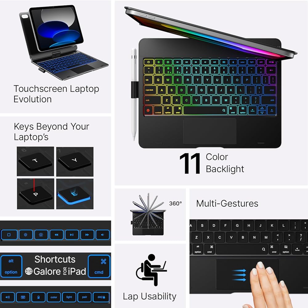 حافظة لوحة المفاتيح typecase لجهاز iPad الجيل العاشر: قابلة للدوران 360 درجة - حافظة مغناطيسية - لوحة تتبع متعددة اللمس - 11 لونًا خلفيًا - رفيعة وخفيفة لجهاز Apple iPad 10th Gen 10.9 (2022)
