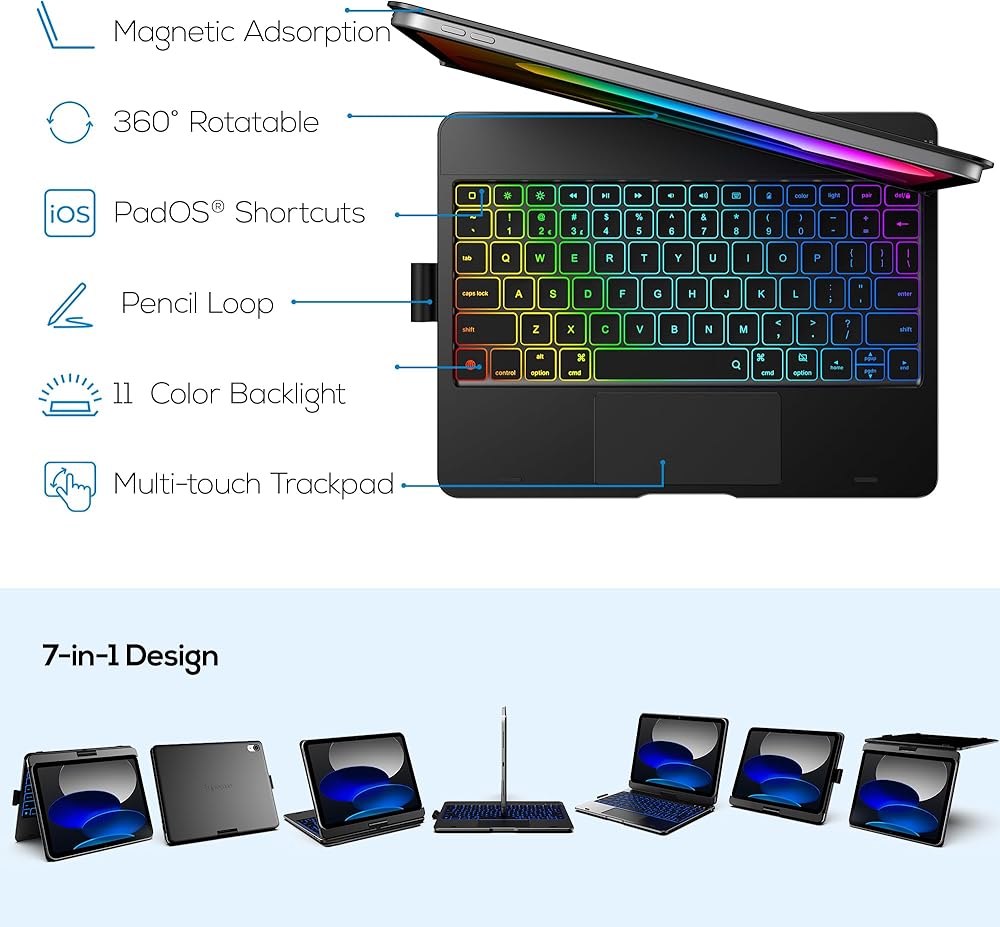 • 7 Use Modes: The patented 360° hinge, stress-tested for 20,000 cycles, adapts to any task. Whether typing, viewing, or using your iPad in tablet mode, enjoy the flexibility and convenience for every scenario.