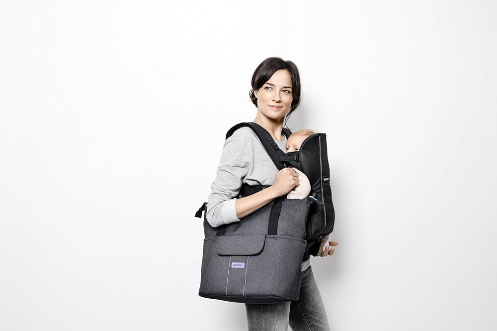 A well-packed diaper bag can literally save the day, and the new BABYBJORN Diaper Bag SoFo is designed to do just that. Diaper Bag SoFo is roomy without feeling cumbersome. Its well-thought-out design features several storage compartments and pockets, as well as a light-colored lining. It keeps everything well-organized and makes it easy for you to find what you need. Diaper Bag SoFo has an adjustable shoulder strap that's easy to hook on a stroller, and makes it comfortable to carry as a shoulder or cross-body bag. Diaper Bag SoFo conveniently converts into a backpack when you need your hands free. The stylish unisex design makes it perfect for everyone - moms, dads or grandparents. A comfortable, machine-washable changing pad in safe Oeko-Tex fabric is included.