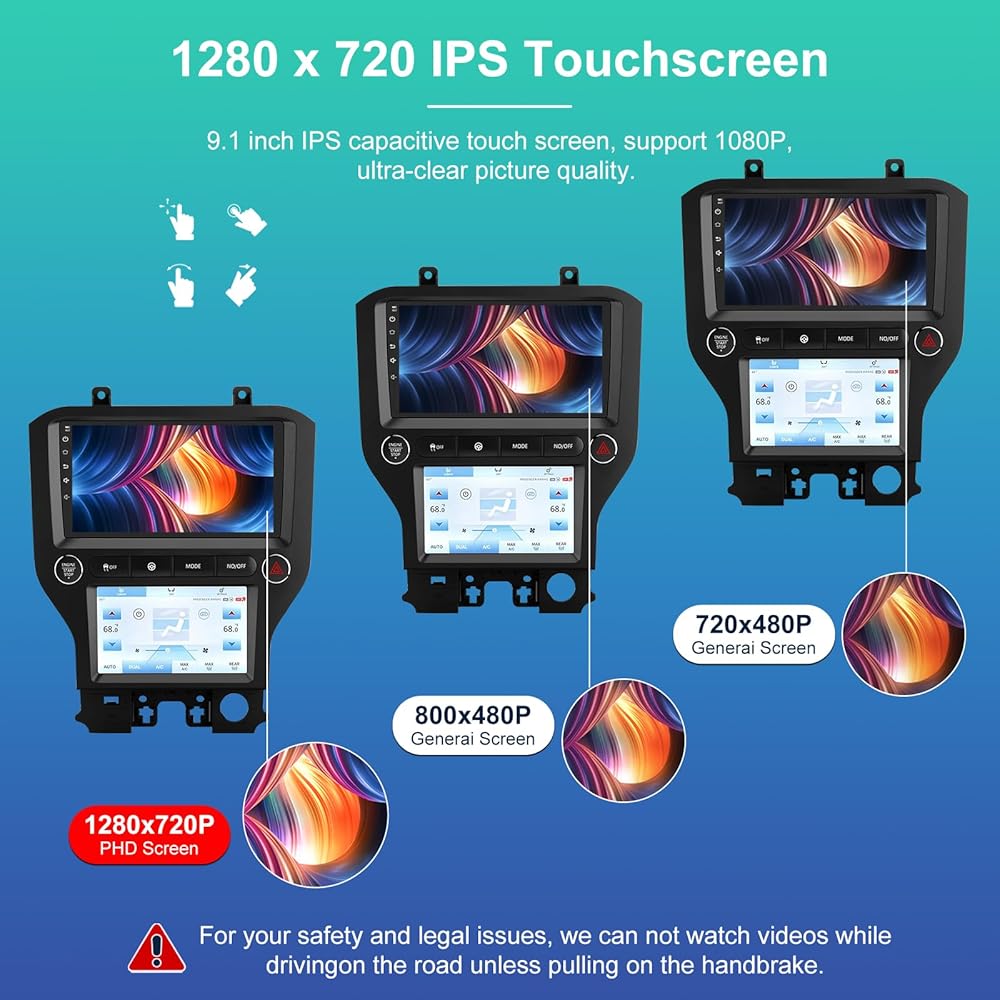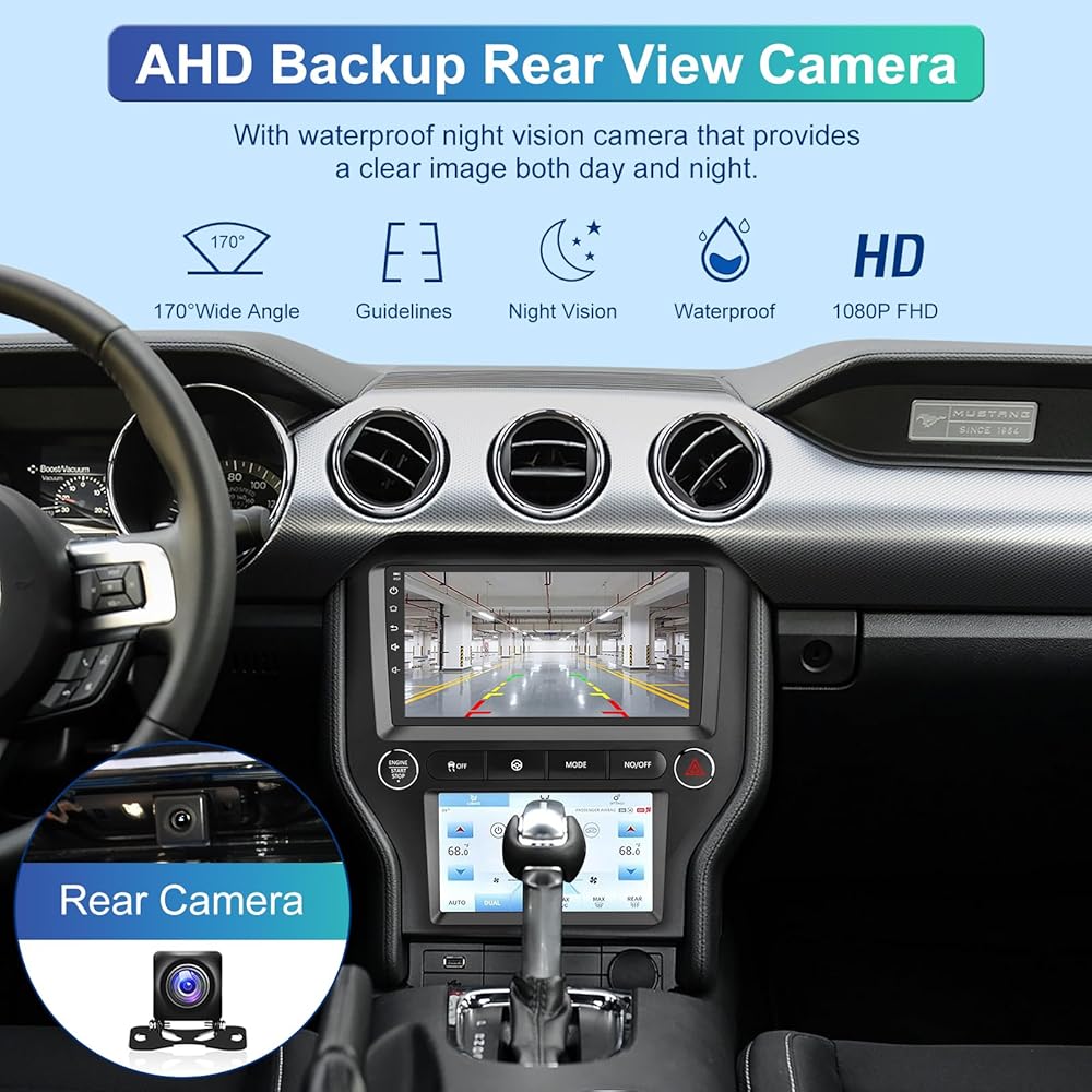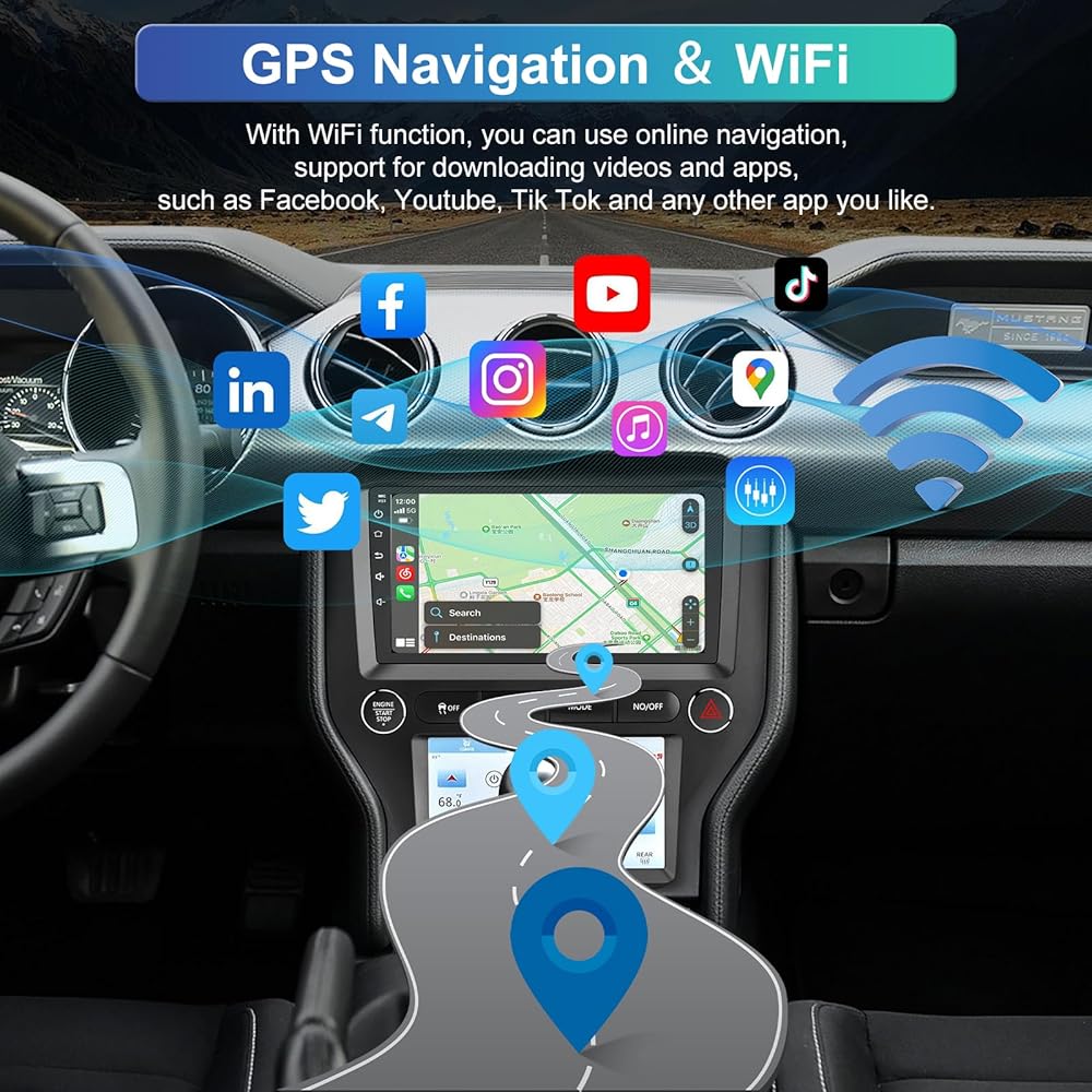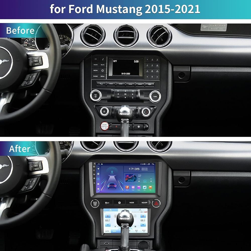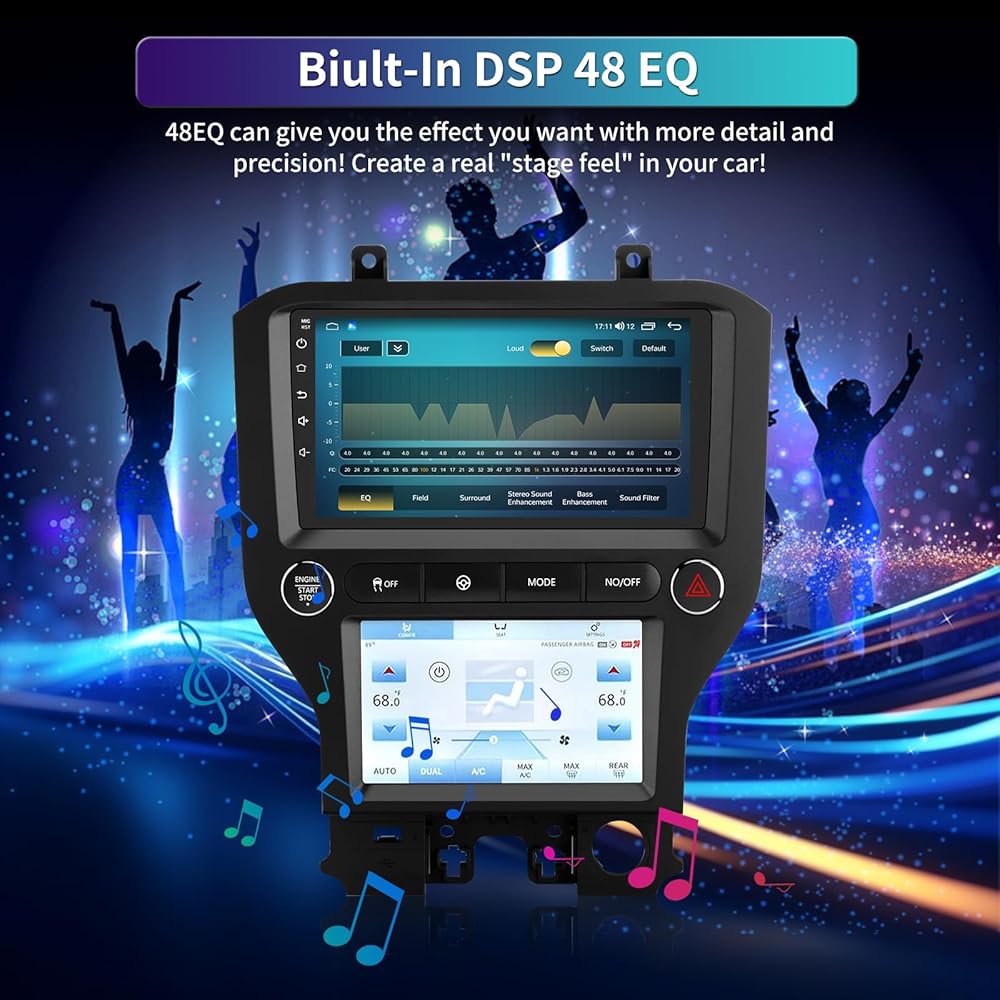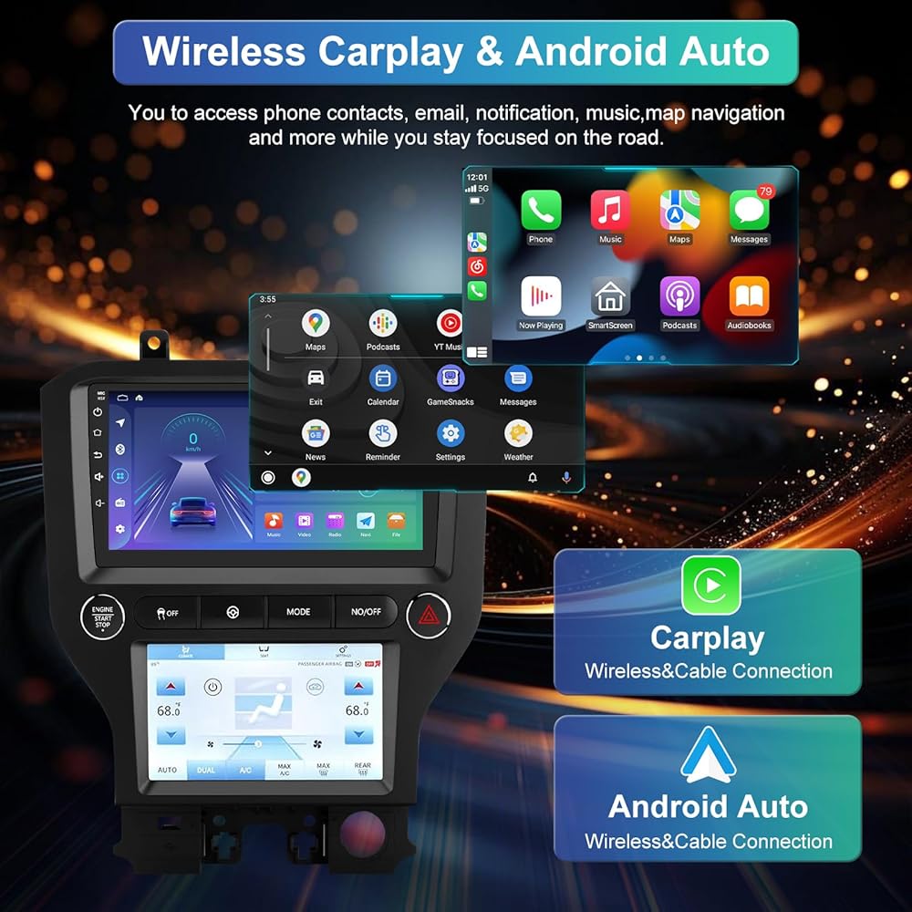 راديو ستيريو للسيارة 8 النواة (4 جيجابايت + 64 جيجابايت) لسيارة Ford Mustang 2015-2021، شاشة لمس مزدوجة 9 بوصات مع Carplay لاسلكي Android Auto، 5.0 بلوتوث FM/AM/RDS DSP GPS SWC 5GWIFI Android 13