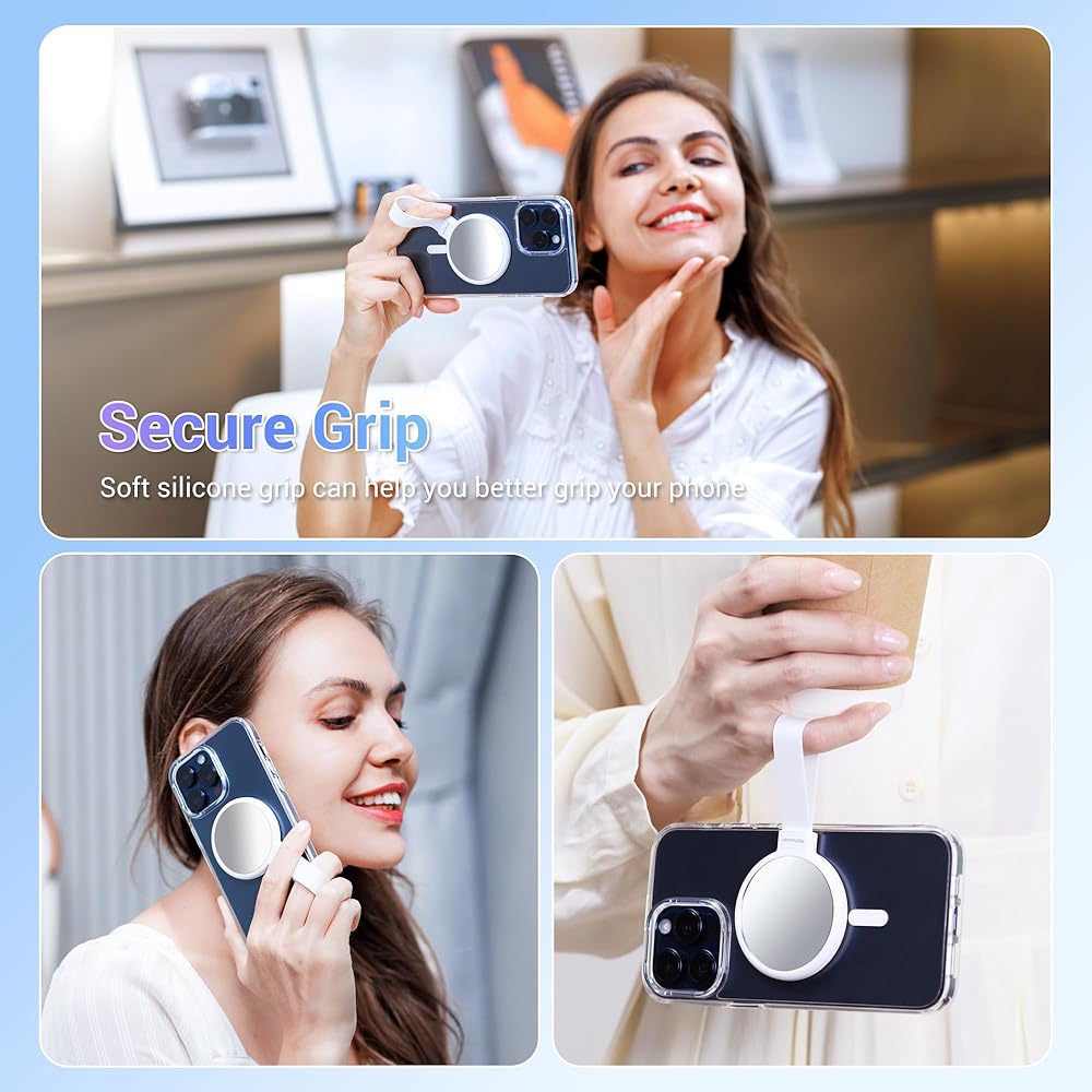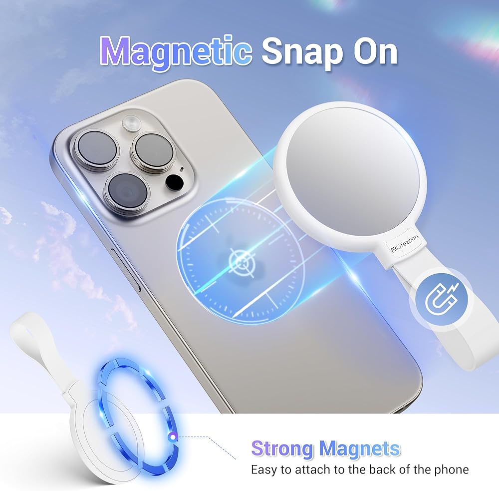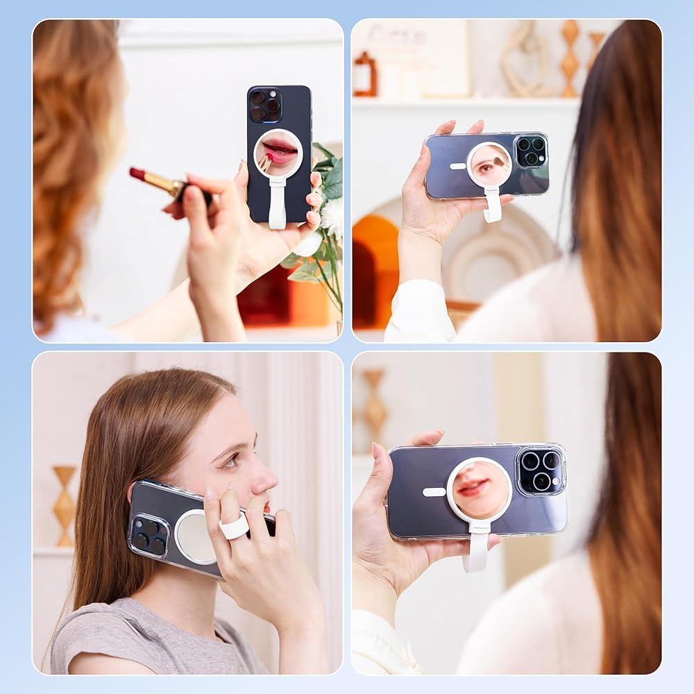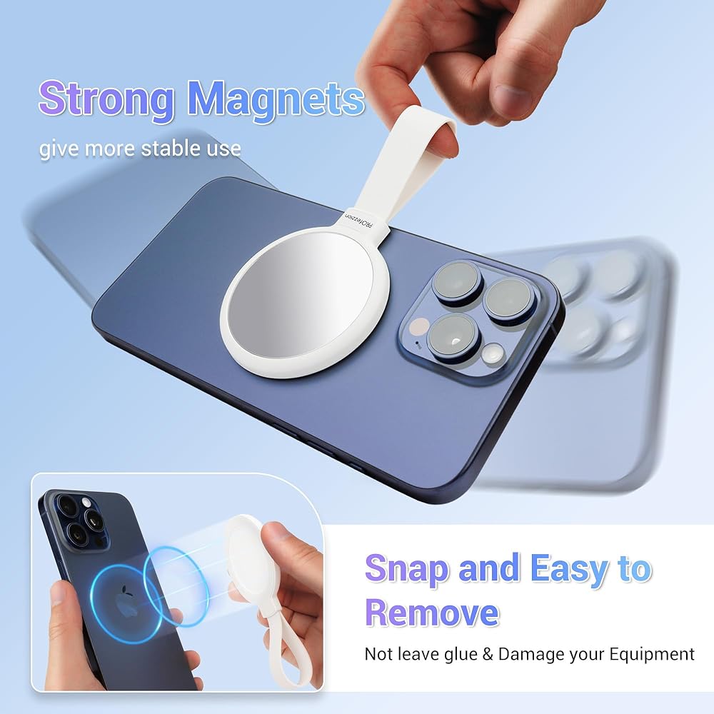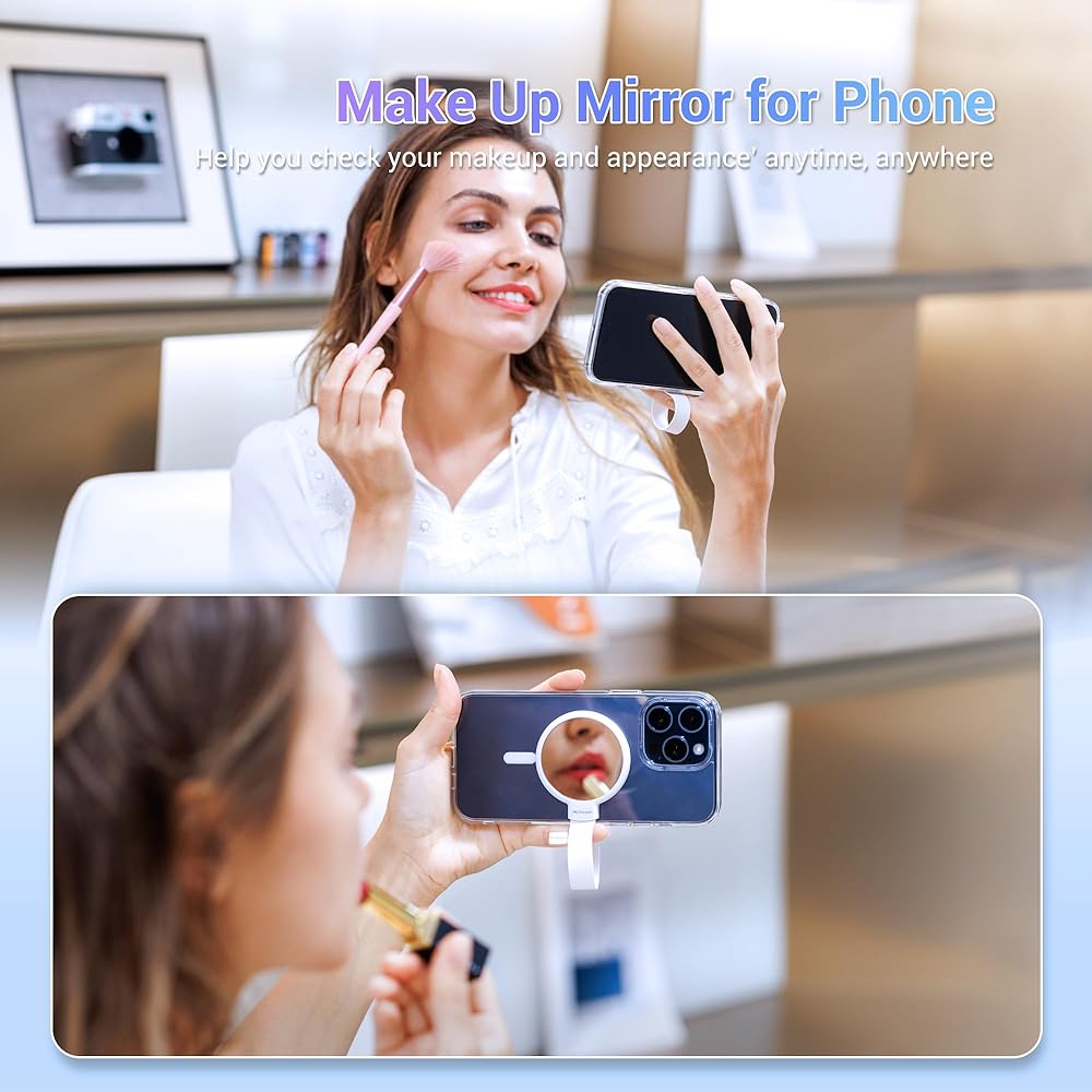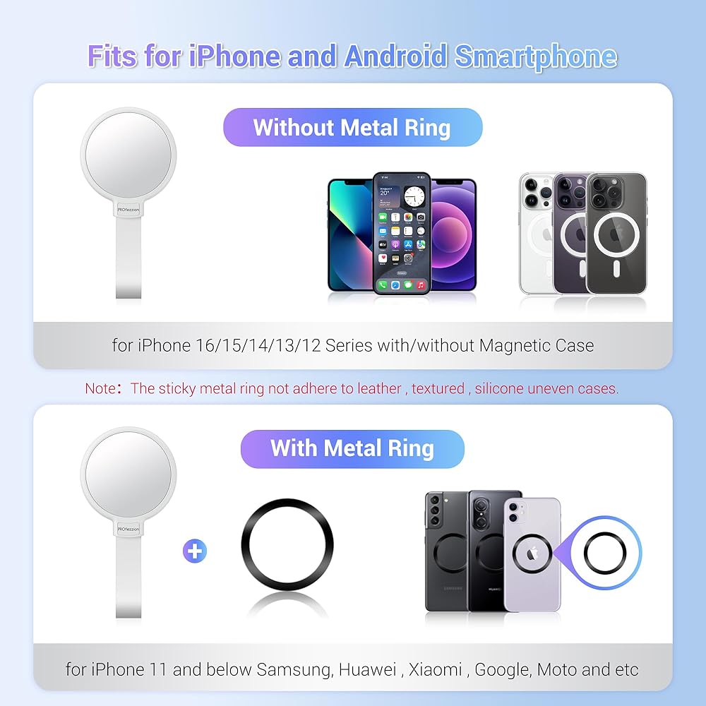 【بسيطة وعملية】توفر مرآة الهاتف المغناطيسية حلاً مثاليًا لالتقاط صور سيلفي مذهلة والبث المباشر ومدونات الفيديو والمكياج. التكبير 1:1 يعيد إنتاج تفاصيل الماكياج بشكل واقعي دون فقدان الواقعية