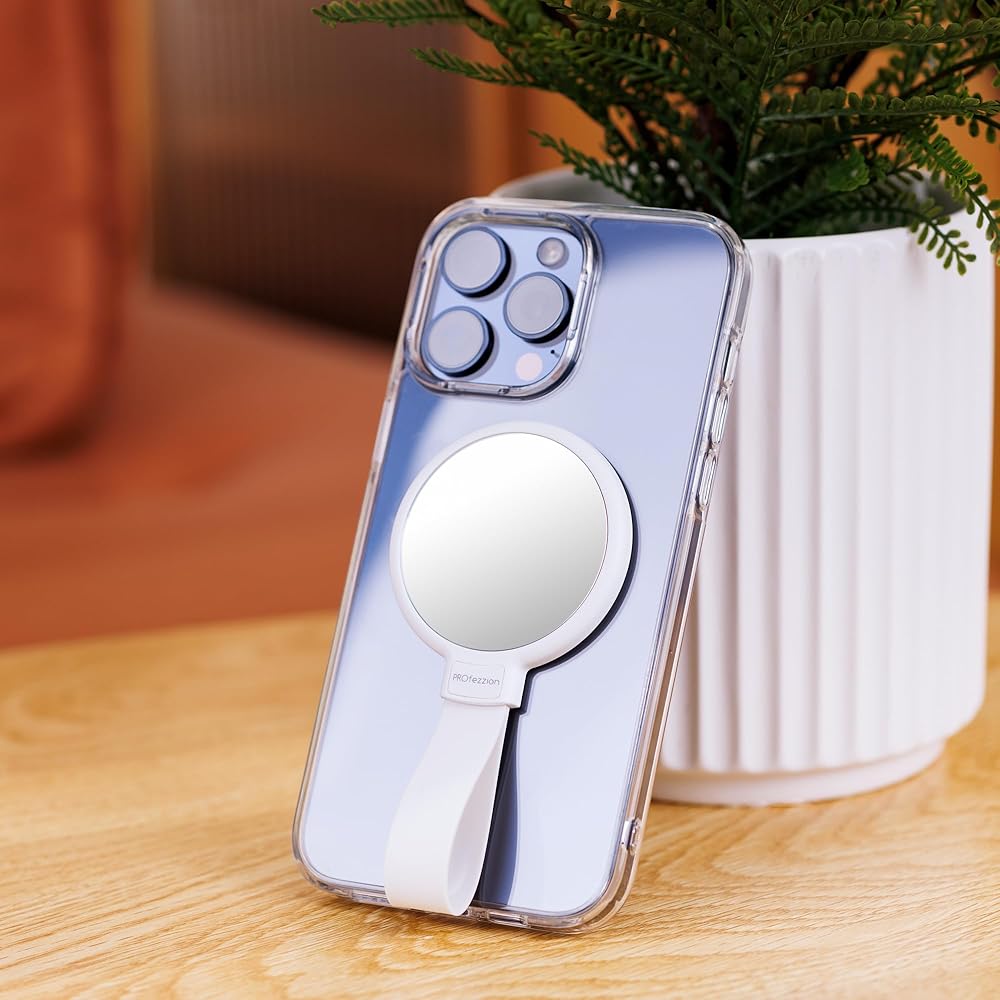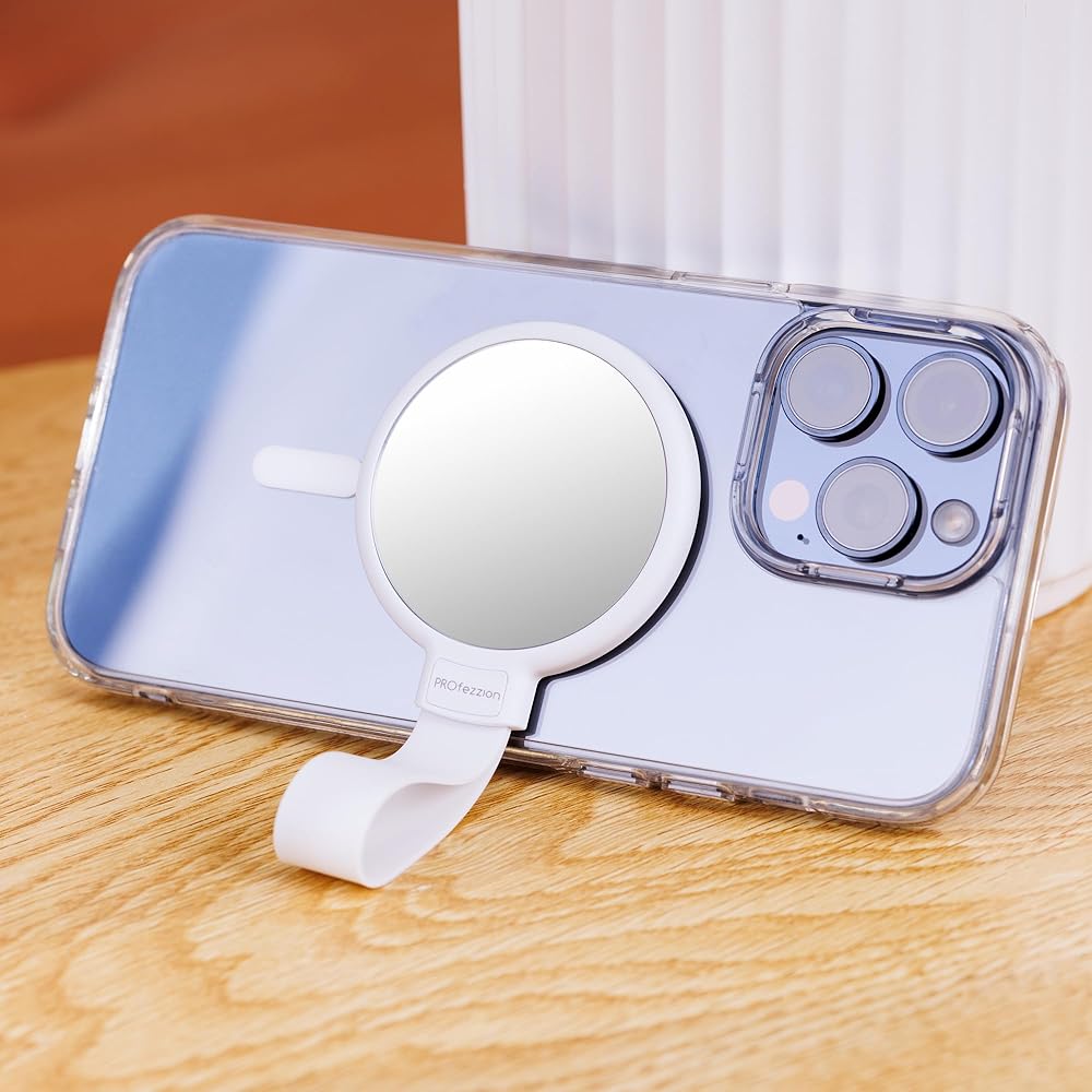 【مغناطيسية قوية】تحتوي مرآة الهاتف PROfezzion على حلقة مغناطيسية قوية، والتي يمكن ربطها بقوة بالجزء الخلفي من الهاتف أو حافظة الهاتف. يختلف عن عصا مرآة الهاتف التقليدية، التصميم المغناطيسي لن يترك بقايا