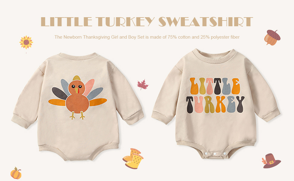 خامة عالية الجودة: زي عيد الشكر للأطفال حديثي الولادة مصنوع من 75% قطن و25% بوليستر، نسيج صديق للجلد، صديق لبشرة الأطفال، مما يوفر راحة ومتانة ممتازة.