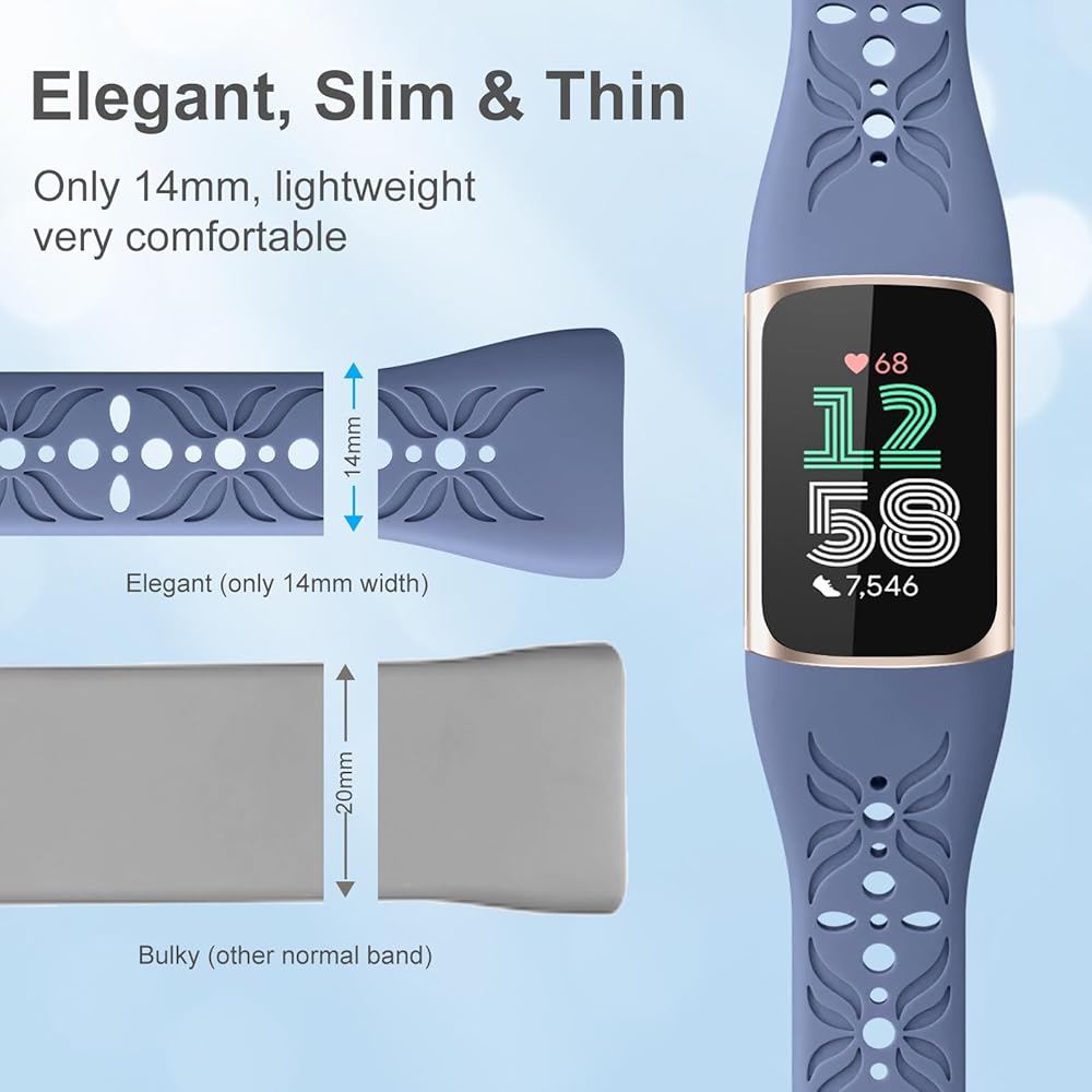 تصميم بنمط جميل جدًا: تم نقش الأساور الرفيعة الخاصة بنا لـ Fitbit Charge 5/Charge 6 بنمط بوهو رومانسي وأنيق، ولكنها ليست زهور شائعة، ومناسبة لكل من النساء والرجال. الأشرطة الفاخرة المقطوعة تشبه الفن الرائع، مما يجعلك مميزًا بين الناس