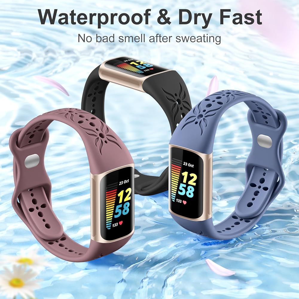 فتحات هواء لطيفة مسامية: هذه الأربطة المقاومة للماء لـ Fitbit Charge 5/Charge 6 مصنوعة من السيليكون الفاخر، ناعمة ولكنها متينة. وفتحات الهواء اللطيفة ليست فقط للزينة، ولكنها تجعل المعصم يتنفس بحرية، وأكثر راحة وبرودة من الأربطة الأصلية، لا داعي للقلق بشأن الطفح الجلدي.
