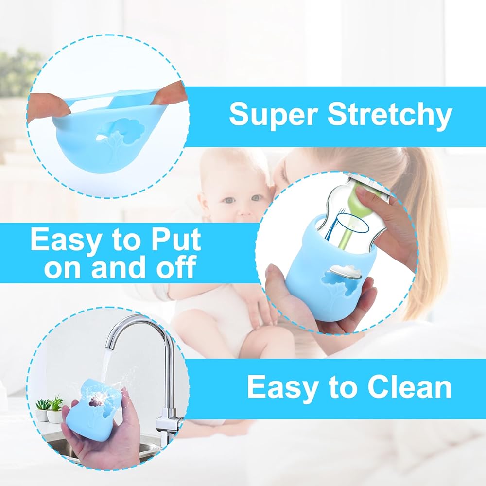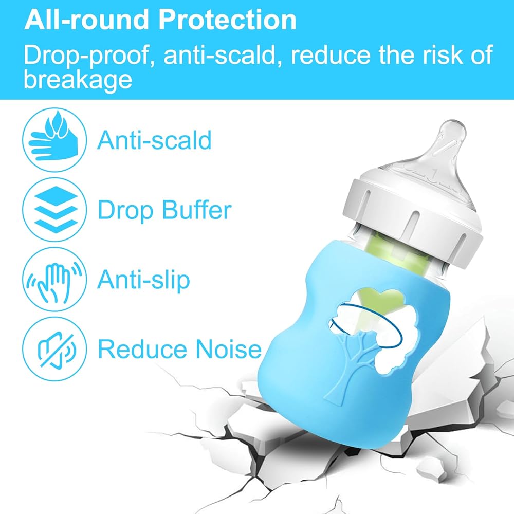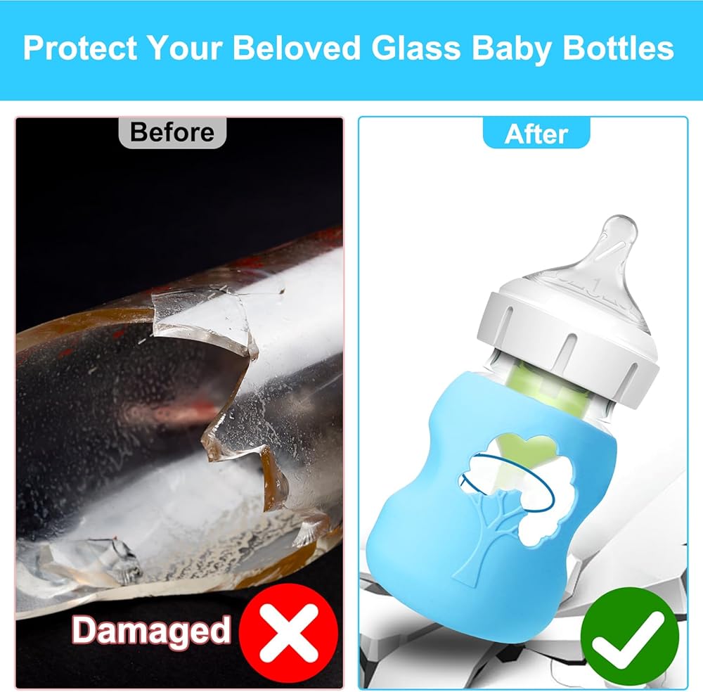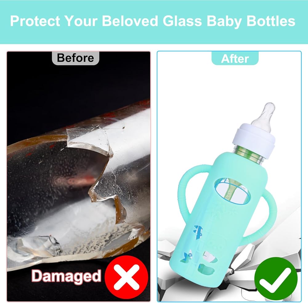 Healthy & Safe:Our glass bottle covers are made of high quality food grade silicone, softer, safer and more reliable. Compared with ordinary silicone, our glass bottle sleeves will not harden over time, BPA free, odorless and reusable. Even if your baby chews occasionally, you don't have to worry about it, it won't hurt their mouths, it is very baby friendly and gives your child the safest experience of using it.