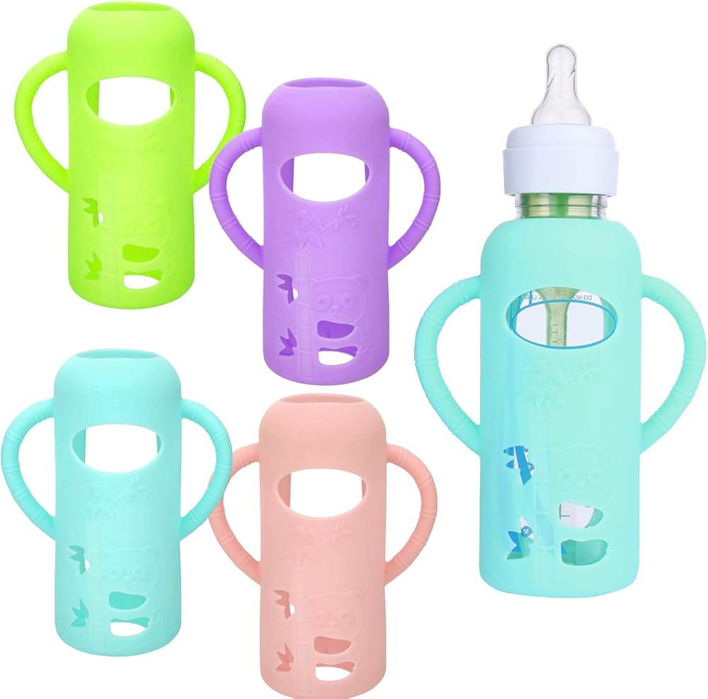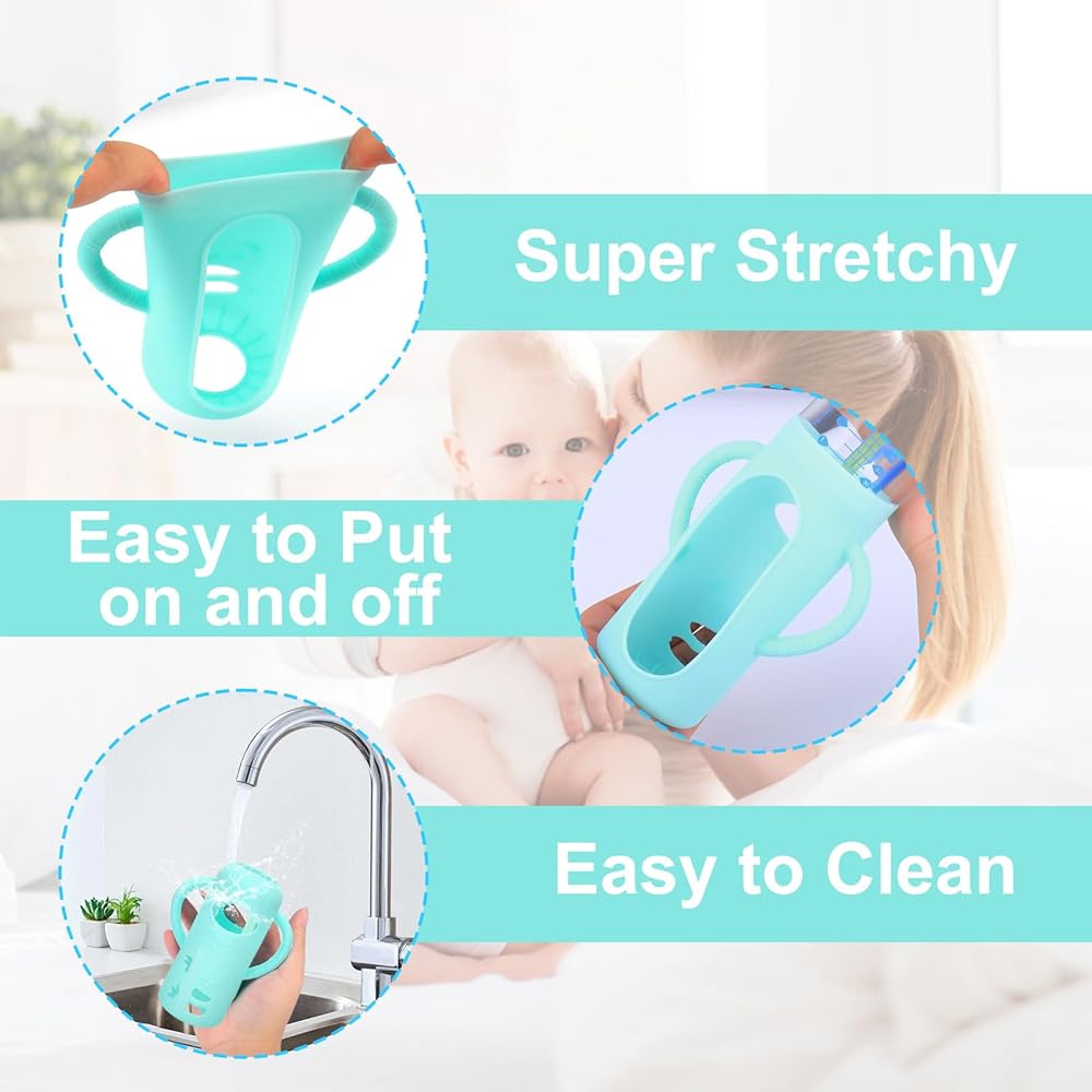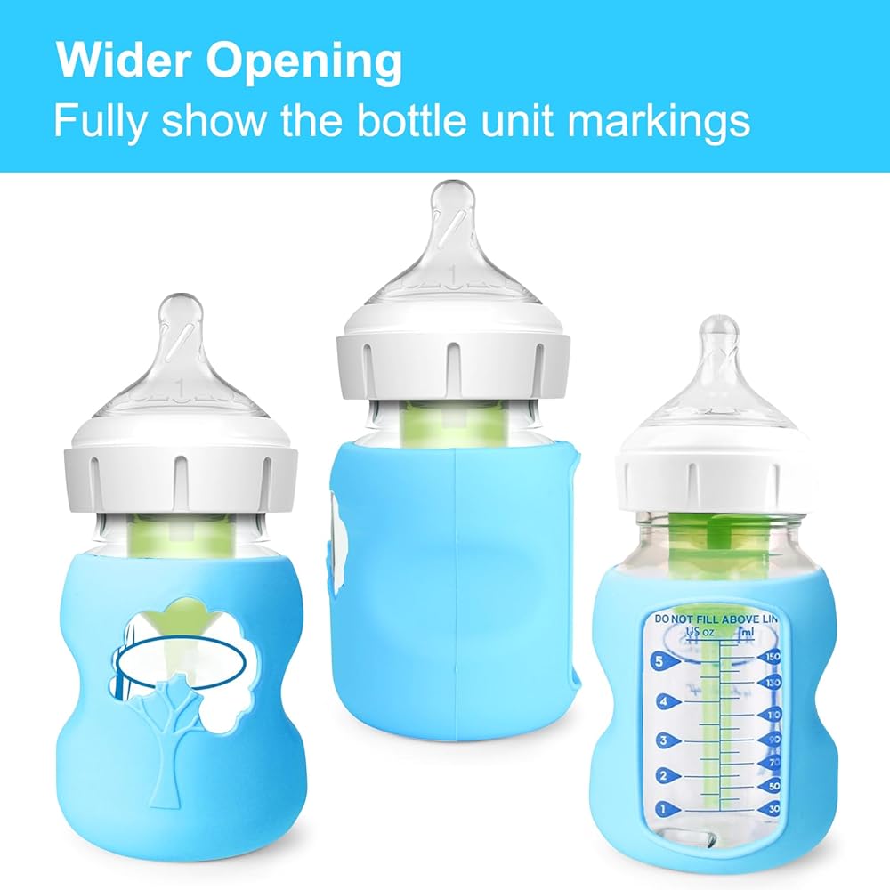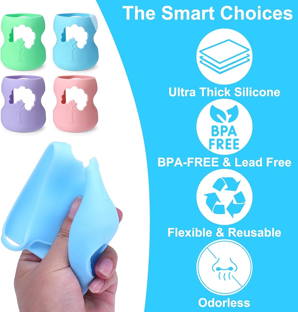Healthy & Safe:Our glass bottle covers are made of high quality food grade silicone, softer, safer and more reliable. Compared with ordinary silicone, our glass bottle sleeves will not harden over time, BPA free, odorless and reusable. Even if your baby chews occasionally, you don't have to worry about it, it won't hurt their mouths, it is very baby friendly and gives your child the safest experience of using it.