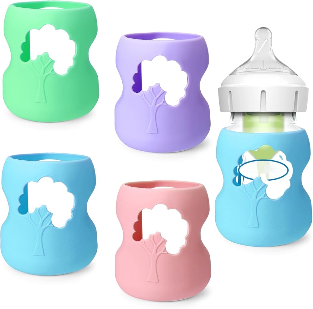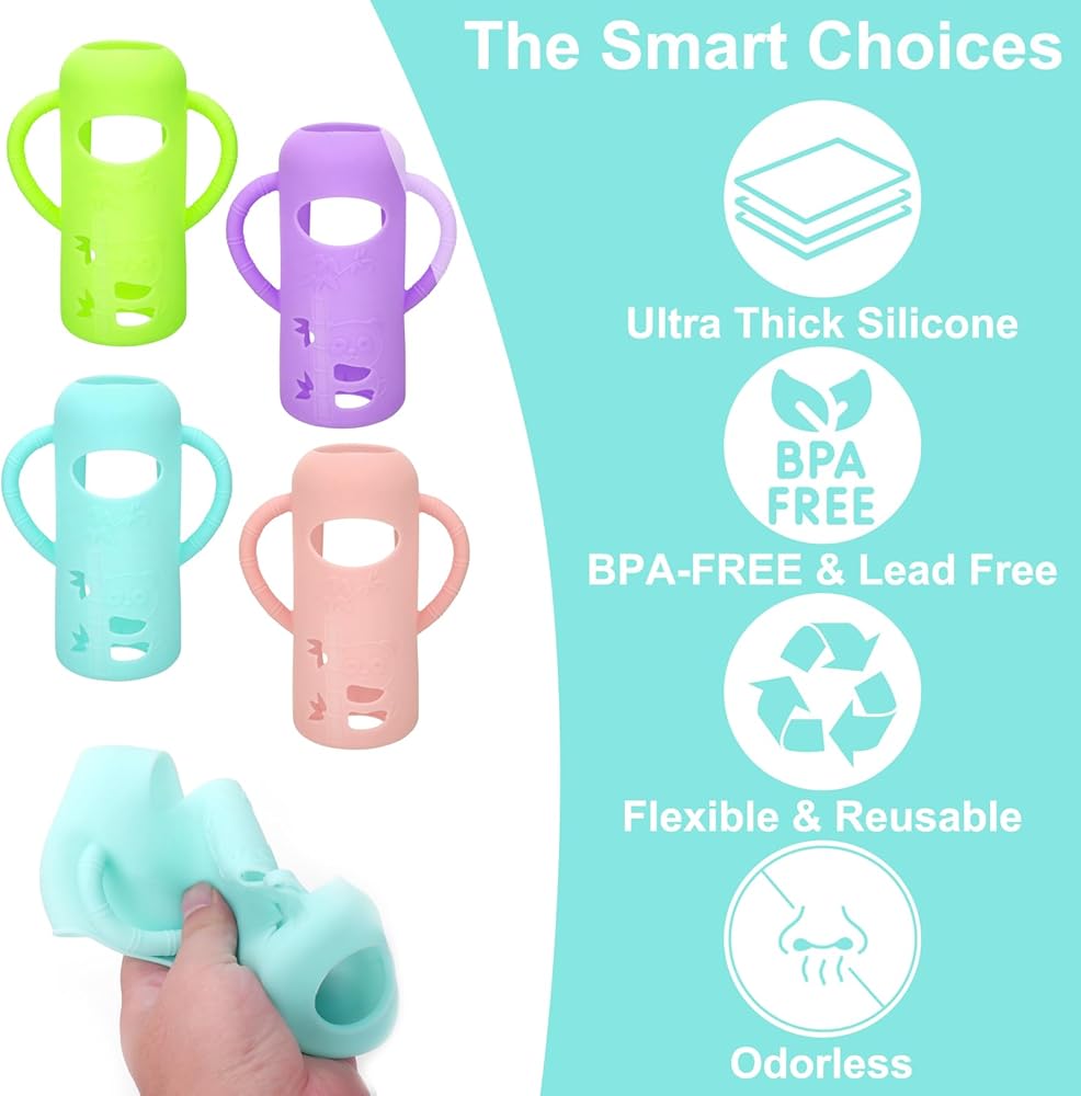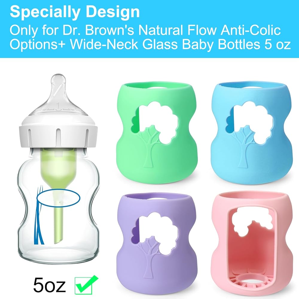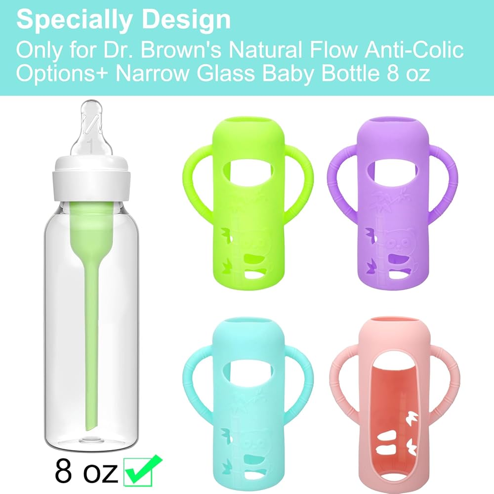 4 Pack Silicone Sleeves for Dr. Brown's Natural Narrow Glass Baby Bottles 8 oz,Anti Breakage Baby Bottle Protective Cover Accessories for Dr. Brown Narrow Glass Baby Bottles 8oz