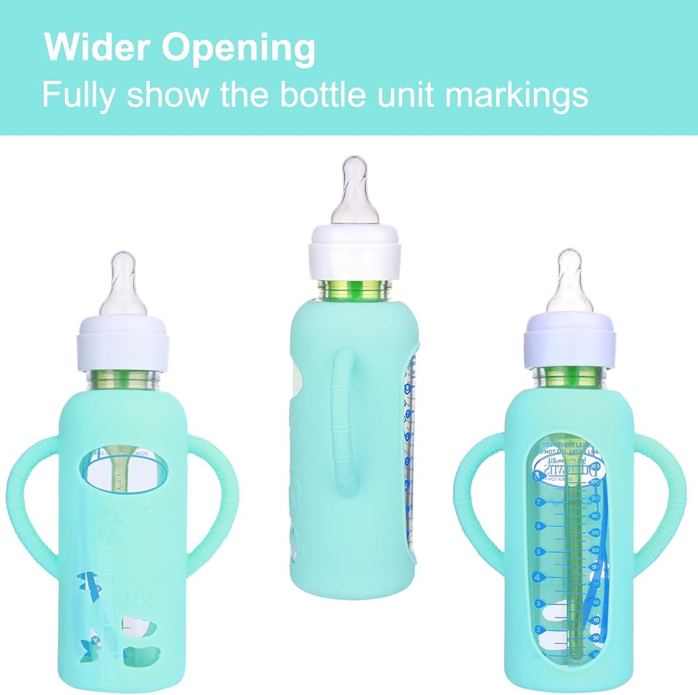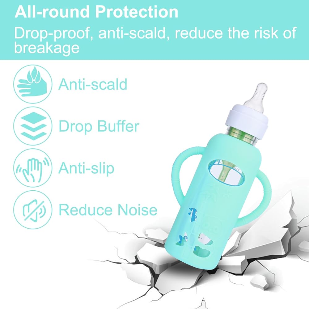 Perfect Compatibility: This silicone bottle sleeve is designed specifically for Dr. Brown's natural narrow glass baby bottles 8 oz to ensure a seamless fit that won't fall off. It provide superior protection against the risk of bottle breakage from accidental drops, while optimizing the gripping experience for peace of mind and ease of use every time. This is a must-have accessories for anyone who uses glass bottles. Note: Not suitable for other capacities of Dr. Brown's glass baby bottles.