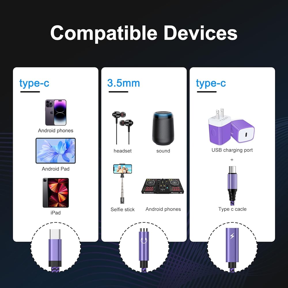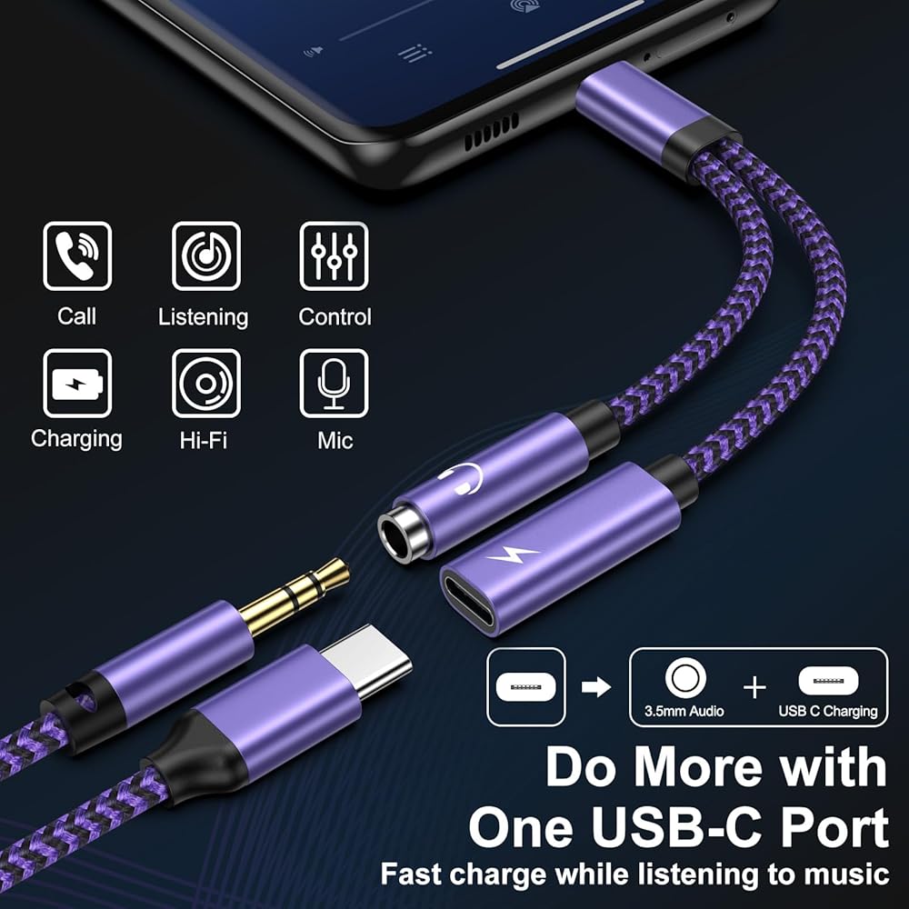 2-in-1 USB C To 3.5mm Audio Charger Adapter