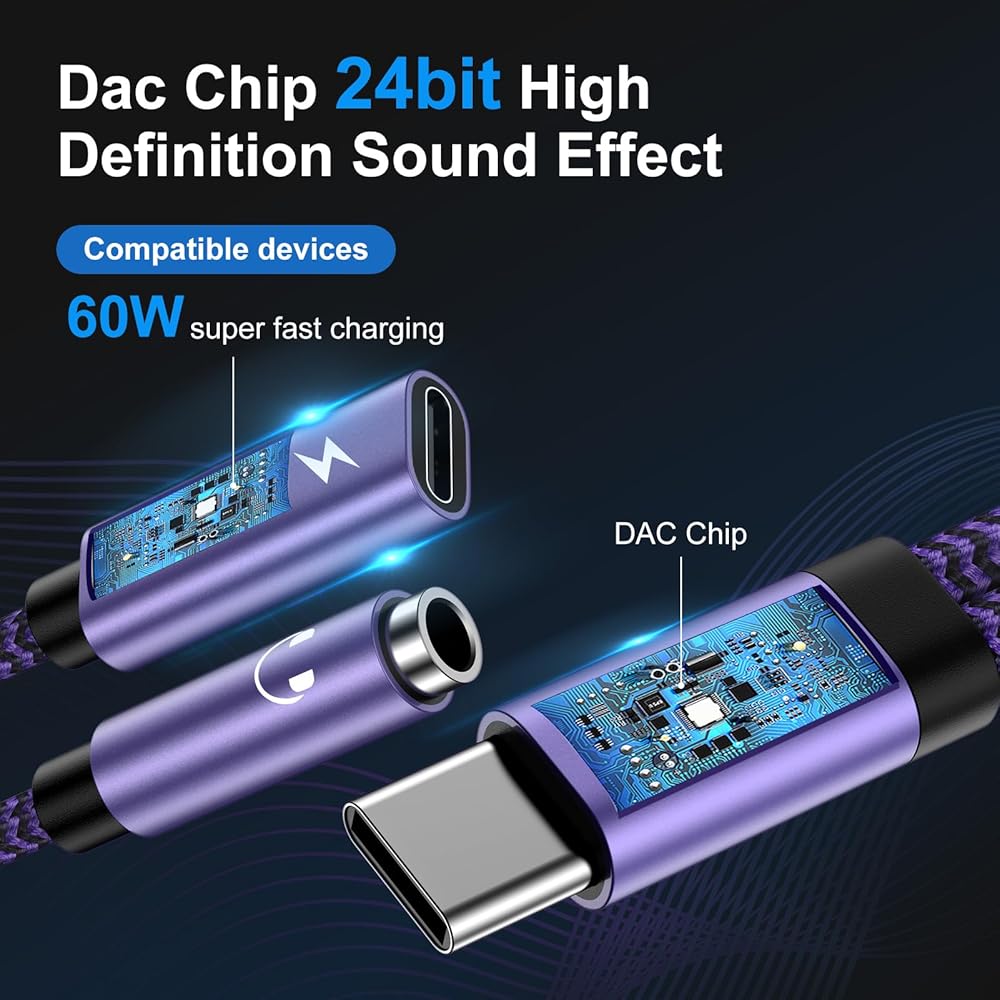 The usb c to 3.5mm audio adapter built-in advanced DAC chip to ensures stable audio transmission, offers supreme 24bit/96KHz noise cancelling technology, Hi-Fi audio quality, no buzzing or any bad audio issues.