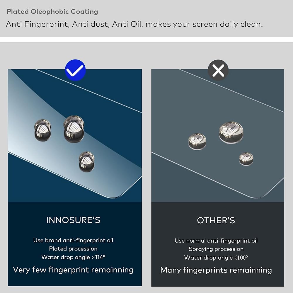 • High-end oleophobic coating keeps the screen daily out of fingerprints, smudges, oil, water etc. Super easy to install along with the steps and without glue resigue after peel-off.
