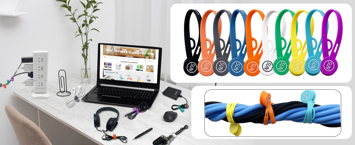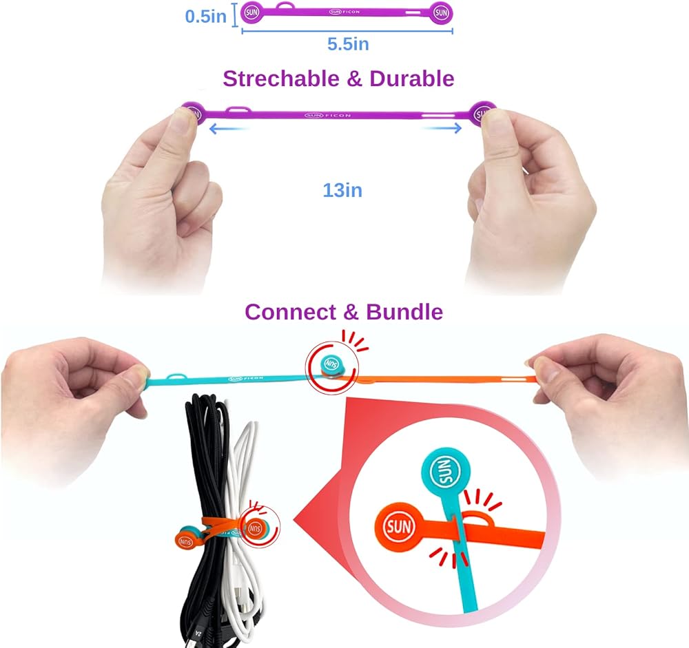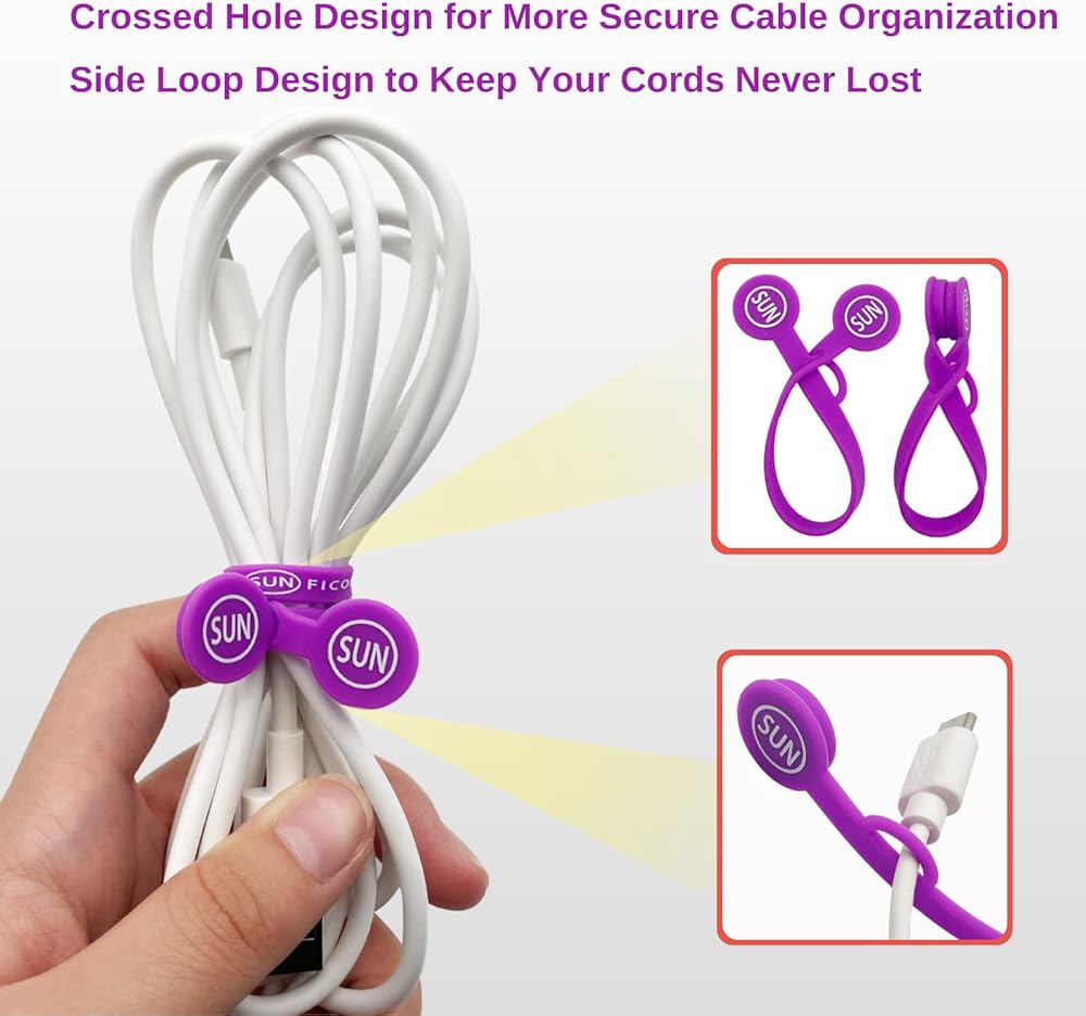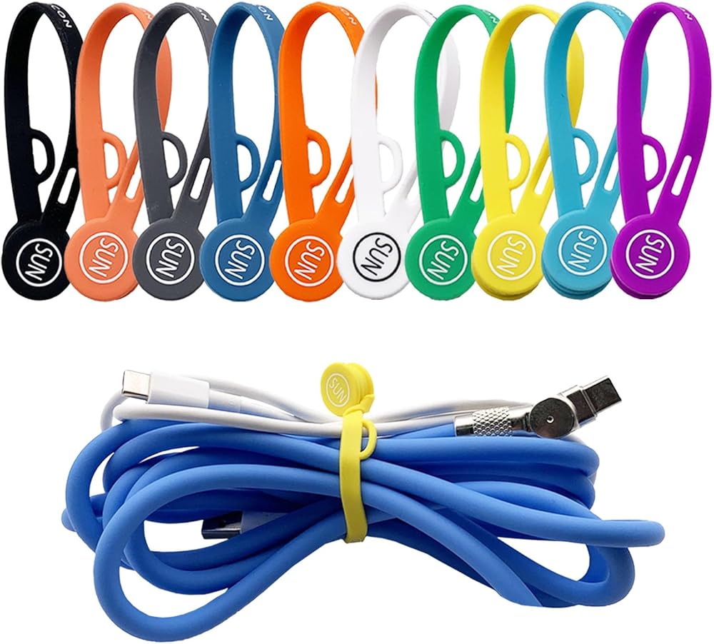 SUNFICON 2023 مشابك كابلات مغناطيسية جديدة منظمو الأسلاك 10 قطع من أشرطة الكابلات الطويلة المطورة من السيليكون، ربطات ملتوية للأجهزة الملونة، حامل سلك سماعة الرأس، مدير المرجعية، السبورة البيضاء، سلسلة مفاتيح مغناطيسية للثلاجة