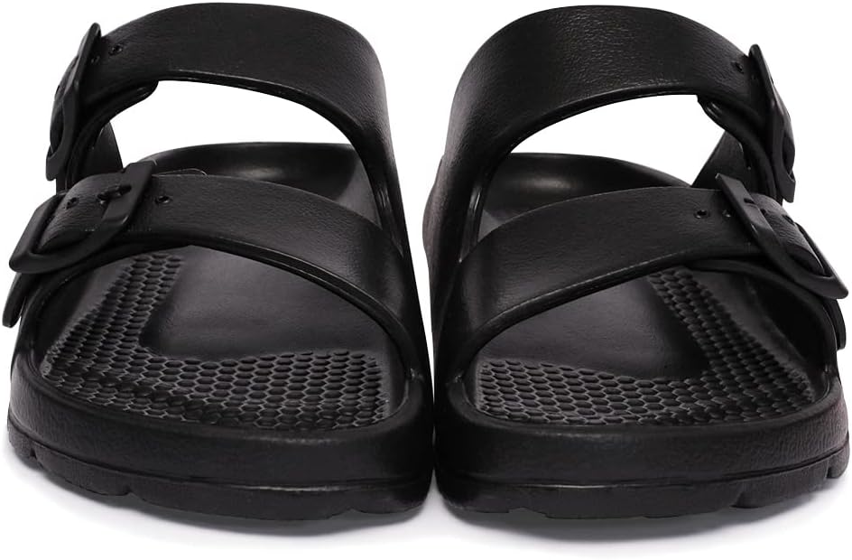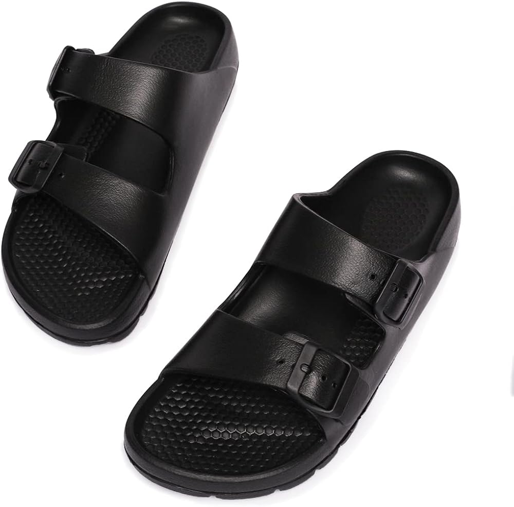 【Ultra Lightweight】Soft flexible lightweight washable EVA foam waterproof slides provides support and comfort. . * Tips: wide width customer please order one size up.