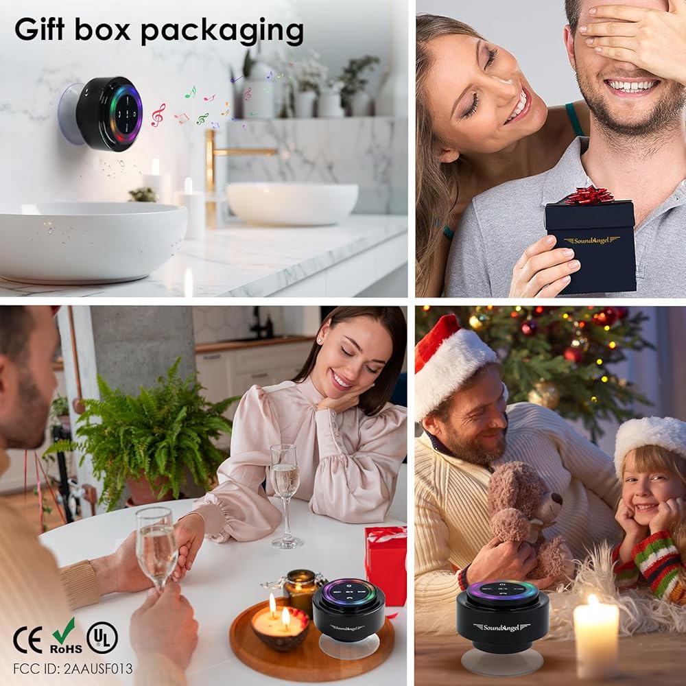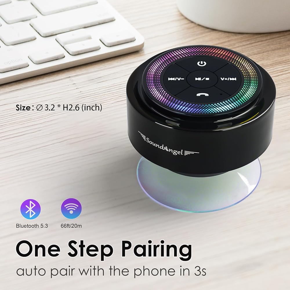 ♬【أفضل مكبر صوت للاستحمام - هدية مميزة】 يتميز SoundAngel Mate بحجم صغير وصغير الحجم، وشكل كلاسيكي ورائع، وجودة صوت مريحة وممتازة، وأداء مذهل مقاوم للماء، ومع شهادات CE وFCC وROHS ومقاوم للماء، فهو مضمون آخر.