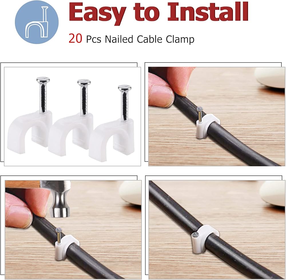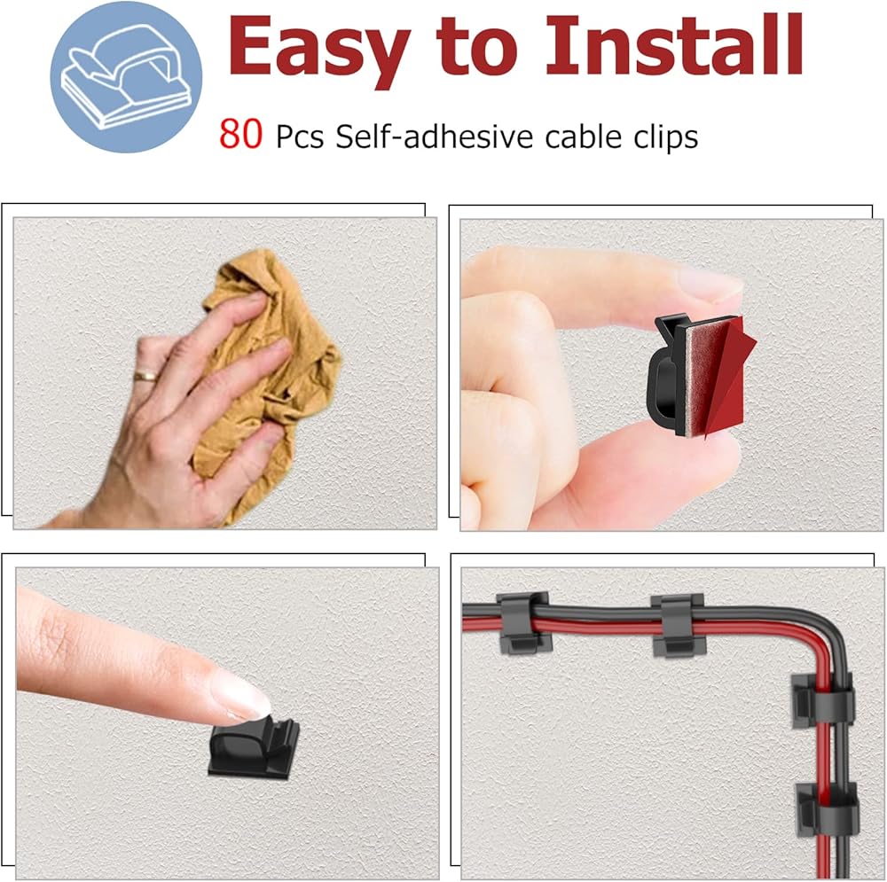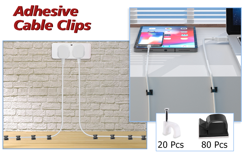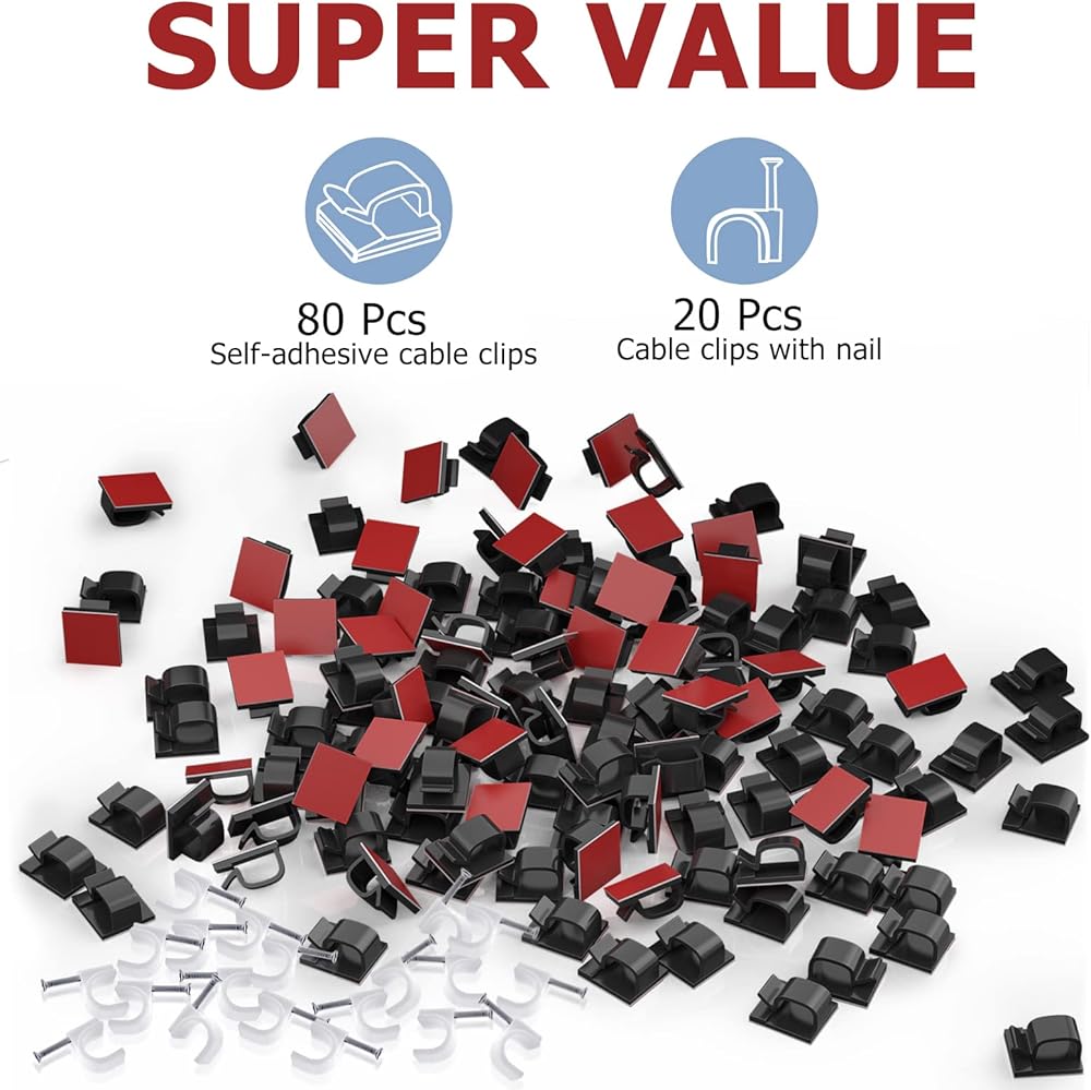 مشابك كابلات لاصقة - تأتي العبوة مع 80 قطعة من مشابك الكابلات و20 قطعة من مشابك الحائط مع مسمار كهدية. مصنوعة من مواد PA66 الممتازة، وهي لزجة وقوية ومتينة. جعل الأسلاك ثابتة بشكل جيد وغير متشابكة. نطاق الحمل: 0.6-0.9 جرام. إذا كان ثقيلًا جدًا أو كنت تريد إصلاحه بشكل دائم، يمكنك استخدام مشبك سلك فولاذي لإصلاحه.