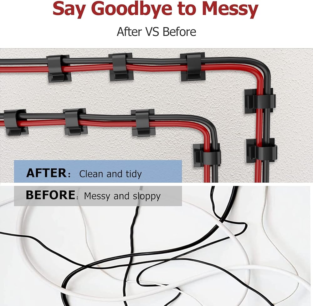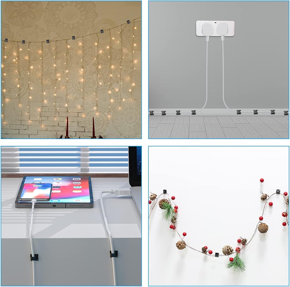 مشابك متعددة الوظائف - لا تُستخدم مشابك السلك فقط لإدارة الكابلات، ولكن أيضًا لتزيين أضواء الهالوين وعيد الشكر وعيد الميلاد. مناسبة لمختلف الأسطح، مثل الطاولة والمعدن والزجاج والأسطح الخشبية.