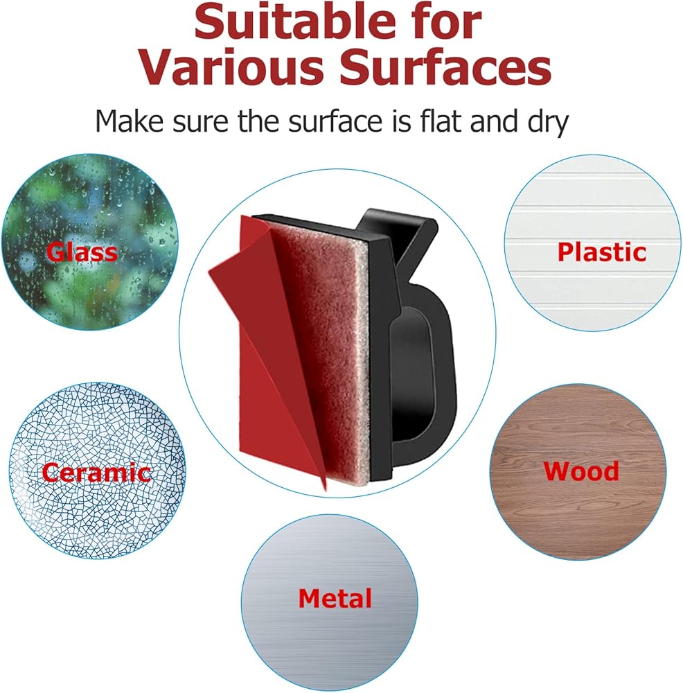 ملاحظات - 1. يرجى تنظيف سطح التثبيت باستخدام وسادات الكحول قبل الاستخدام. 2. قم بلصقه واضغط بقوة لمدة 30 ثانية للحصول على أقصى قدر من الالتصاق. 3. يرجى الانتظار لمدة 24 ساعة قبل استخدام المشابك للحصول على لاصق أقوى.