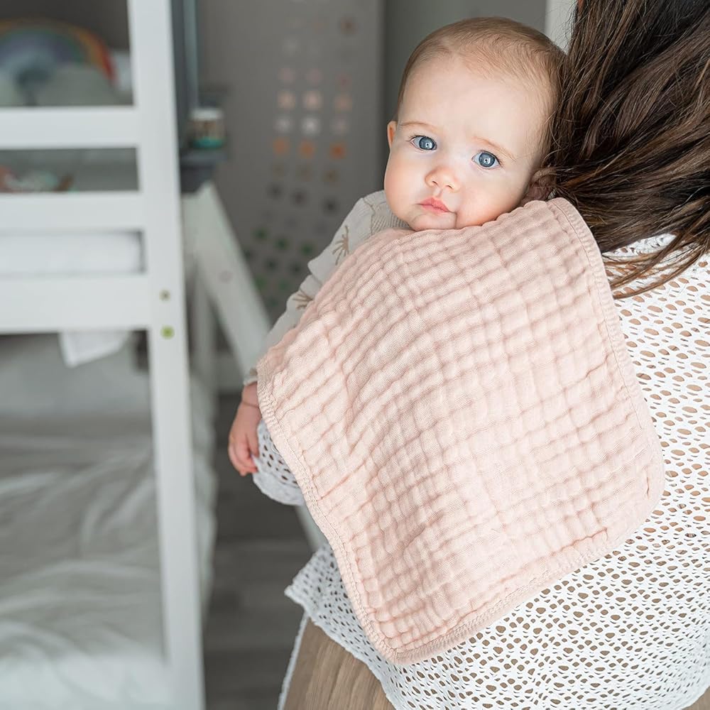 جودة فاخرة: مصنوعة من قطن الموسلين المسامي بنسبة 100%، ونحن نفخر باستخدام مواد عالية الجودة لصنع أقمشة التجشؤ الخاصة بنا. القطن لطيف للغاية على بشرة الطفل الحساسة، كما أن أقمشة التجشؤ الخاصة بنا عالية الامتصاص ومتينة وقابلة للغسل في الغسالة، مما يضمن قدرتها على التعامل مع جميع الفوضى التي يتعرض لها طفلك وتدوم خلال عدة غسلات.