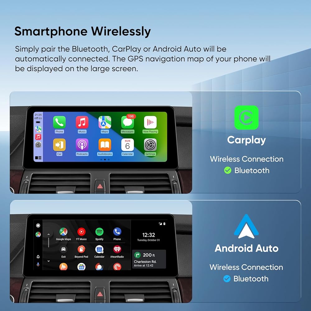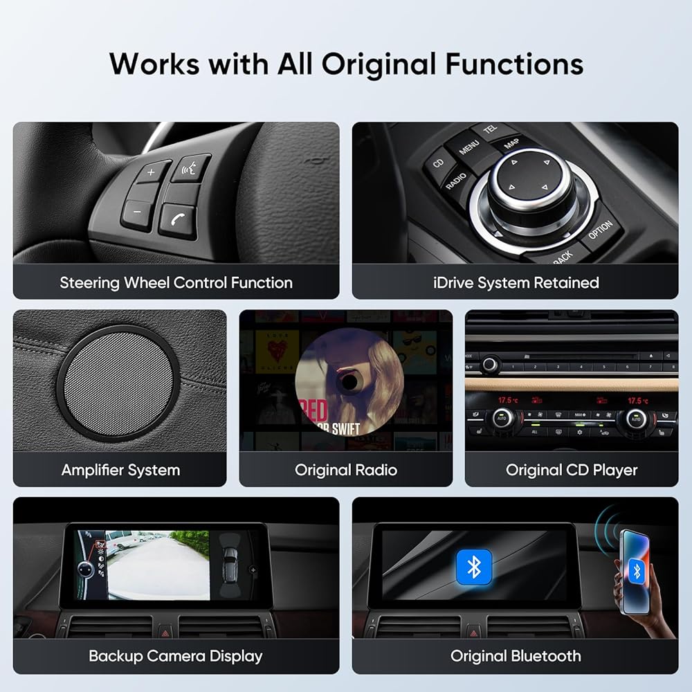 【تكامل مثالي】مصمم خصيصًا لسيارات BMW. لا تتطابق هذه الوحدات مع لوحة القيادة الأصلية للحصول على مظهر متكامل تمامًا فحسب، بل توفر أقوى تجربة لاسلكية CarPlay / Android Auto وشاشة تعمل باللمس لسيارتك BMW، مما يجعل لوحة القيادة أكثر ذكاءً من أي وقت مضى.