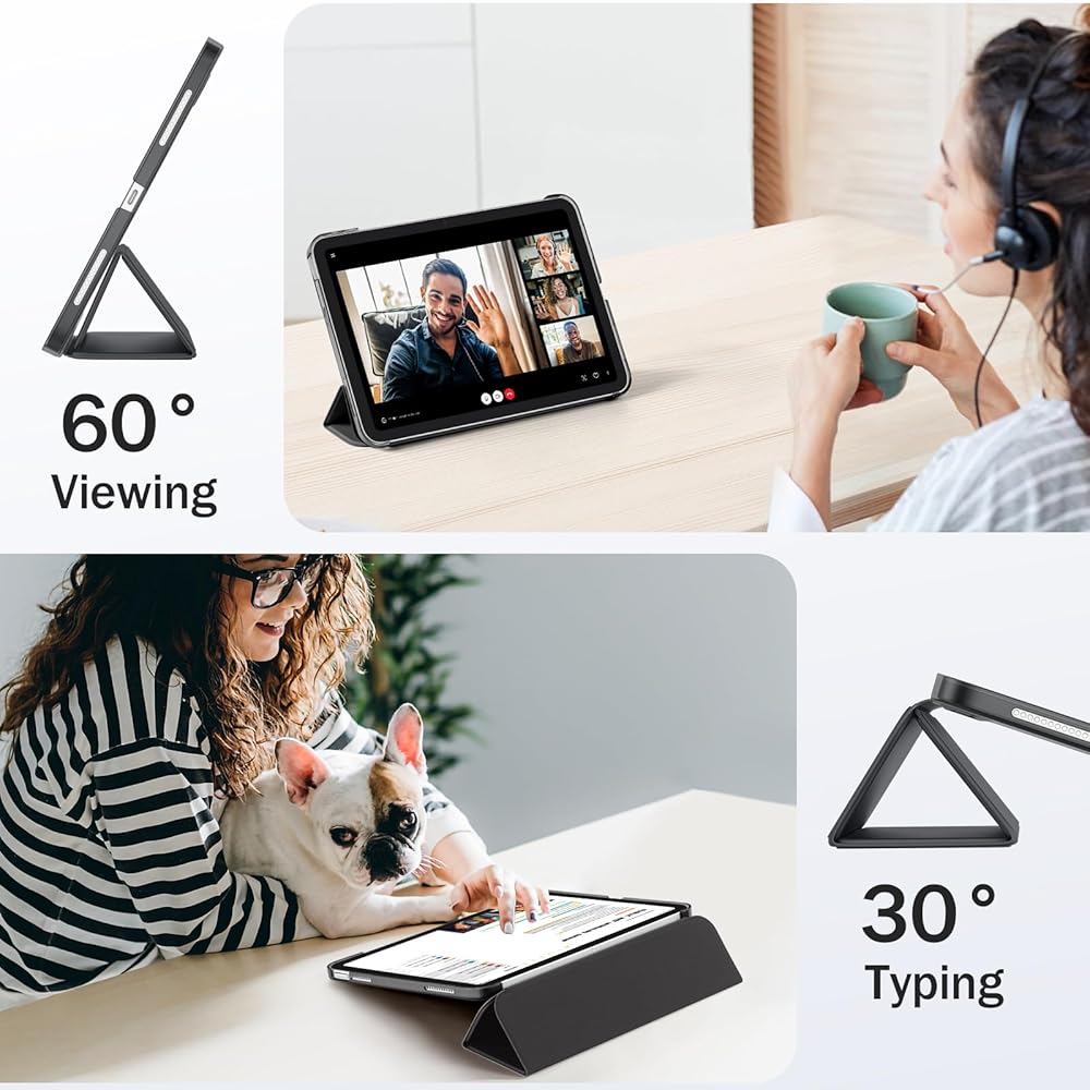 【زاويتان للرؤية】: تم تصميم الأغطية الخاصة بنا مع وضع راحة المستخدم في الاعتبار، مع زاويتين للحامل تم اختيارهما لتتناسب مع عادات استخدام معظم الأشخاص، سواء كنت تعمل أو تسترخي، من الكتابة إلى مشاهدة برنامجك المفضل، فإن حافظة iPad هذه تناسبك مغطاة