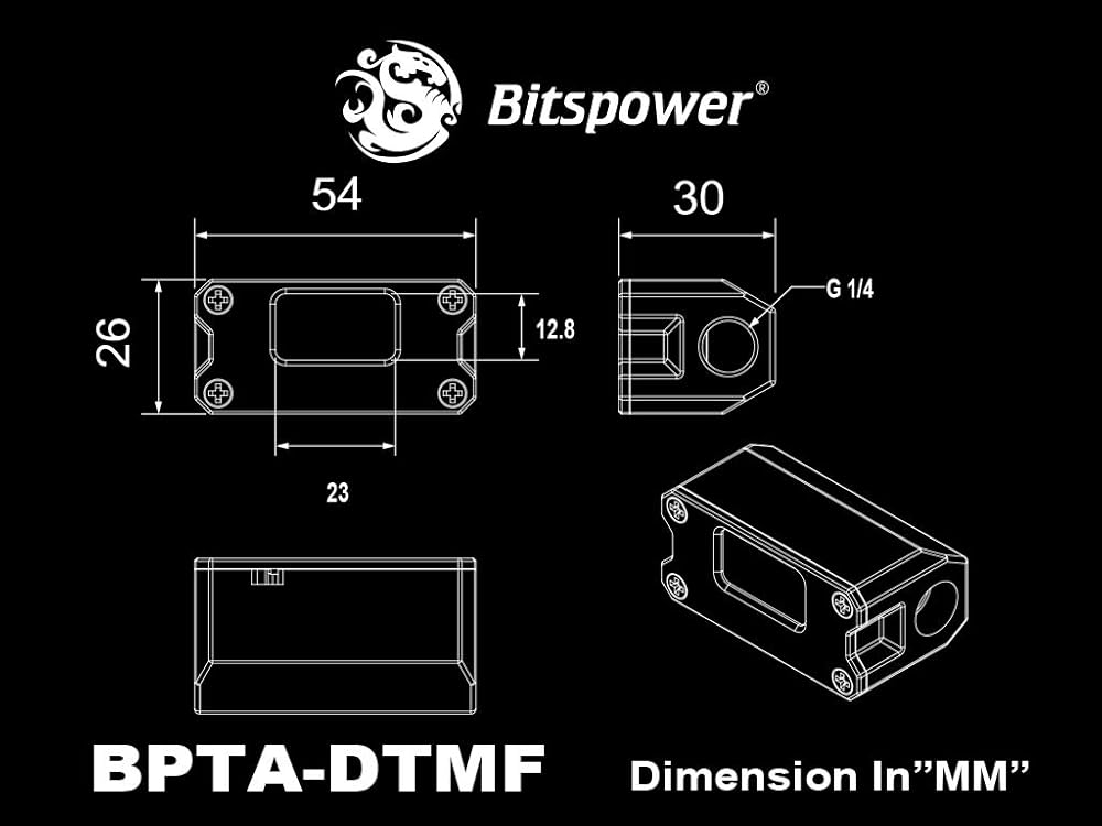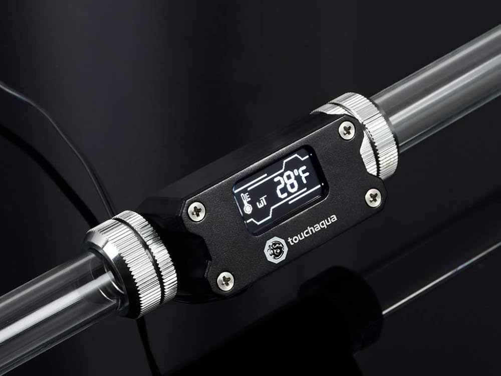 With a bright OLED display, slick black finish and a light weight of 79 grams, the Bitspower Touchaqua Digit thermal sensor ( Fahrenheit version ) is the accessory of choice to monitor your water cooling loop temperature. Powered via SATA power adapter, the compact thermal sensor is fitted with 1/4” thread to fit within the most common loops. Don't just guess the performance of your water loop, see it.