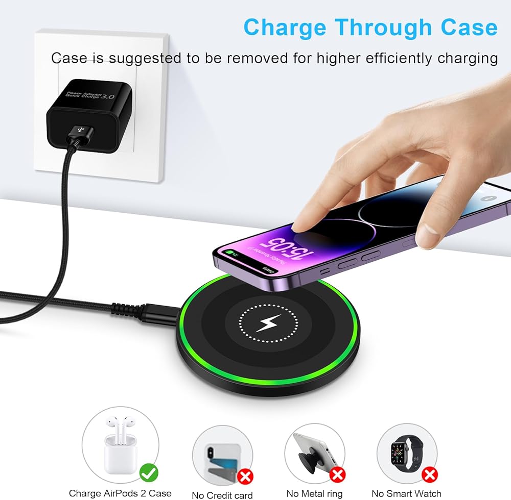 Wireless Charger Samsung Fast Charging Pad Android Phone Charger Pad Charging Station with QC 3.0 Power Adapter for Samsung,iPhone