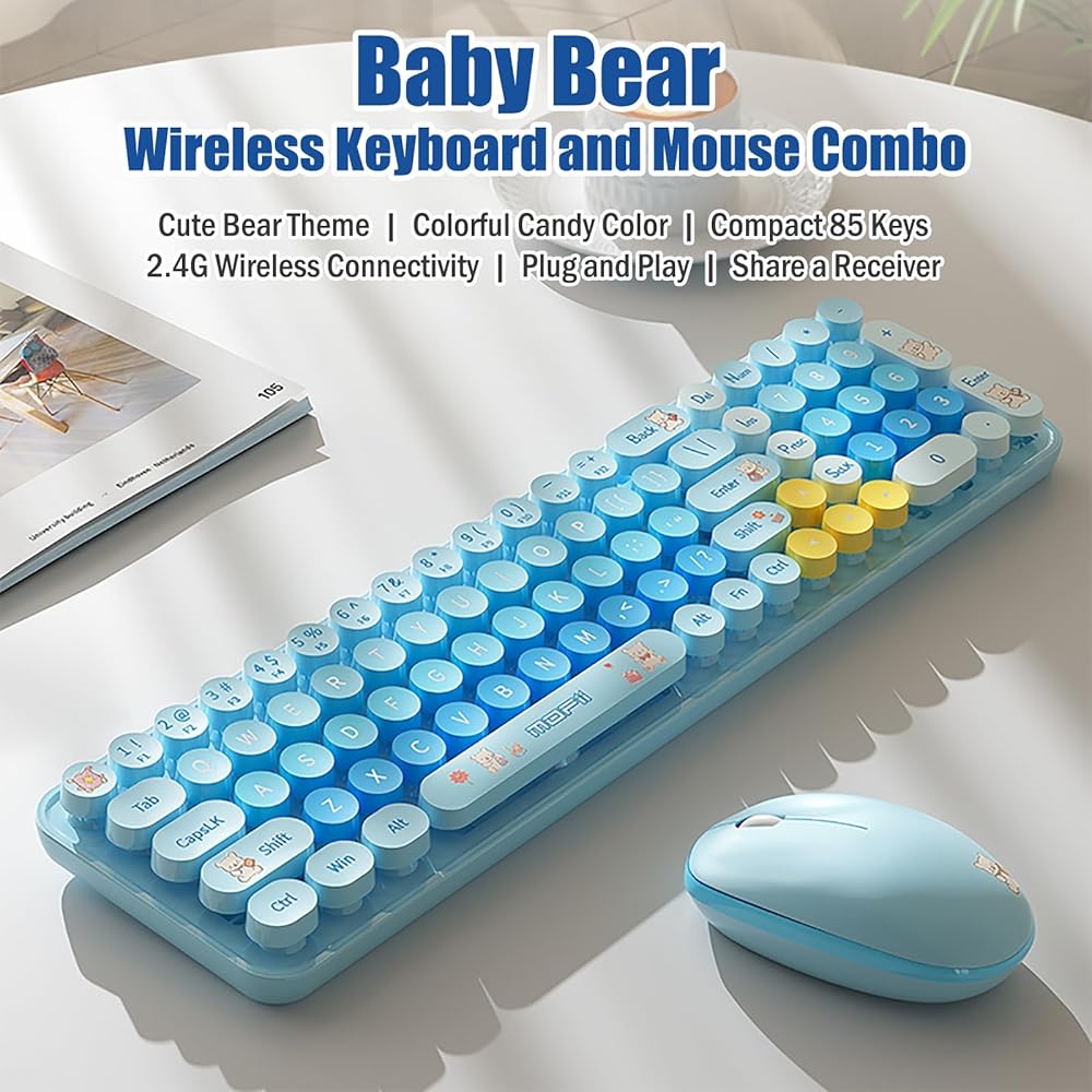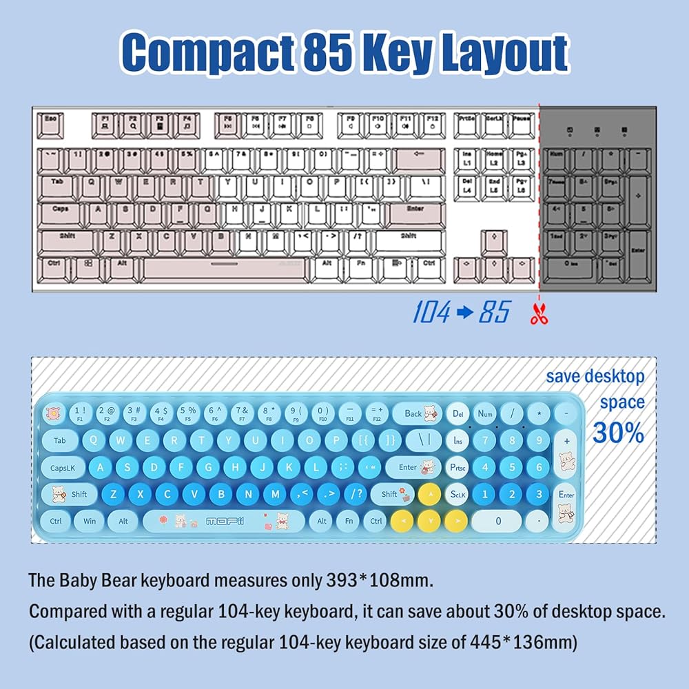 【Nice appearance, small size】The compact 85-key design can be easily held by women with one hand, small and portable, and realizes various functions through the combination of Fn and Shift keys. The candy-colored round keycaps look great, it's a gifts for girls and children.