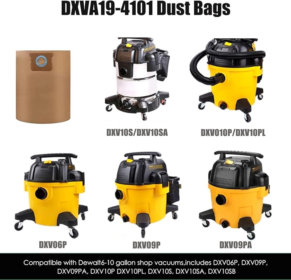 Compatible with DEWALT DXV06P DXV09P DXV09PA DXV10P DXV10PL DXV10S DXV10SA DXV10SB wet/dry vacuums, these vacuum bags make cleaning quicker and more efficient. Keep your workspace tidy with these dust bags