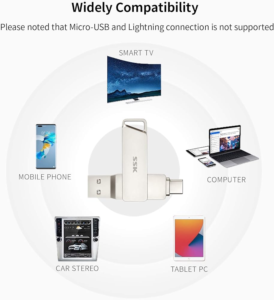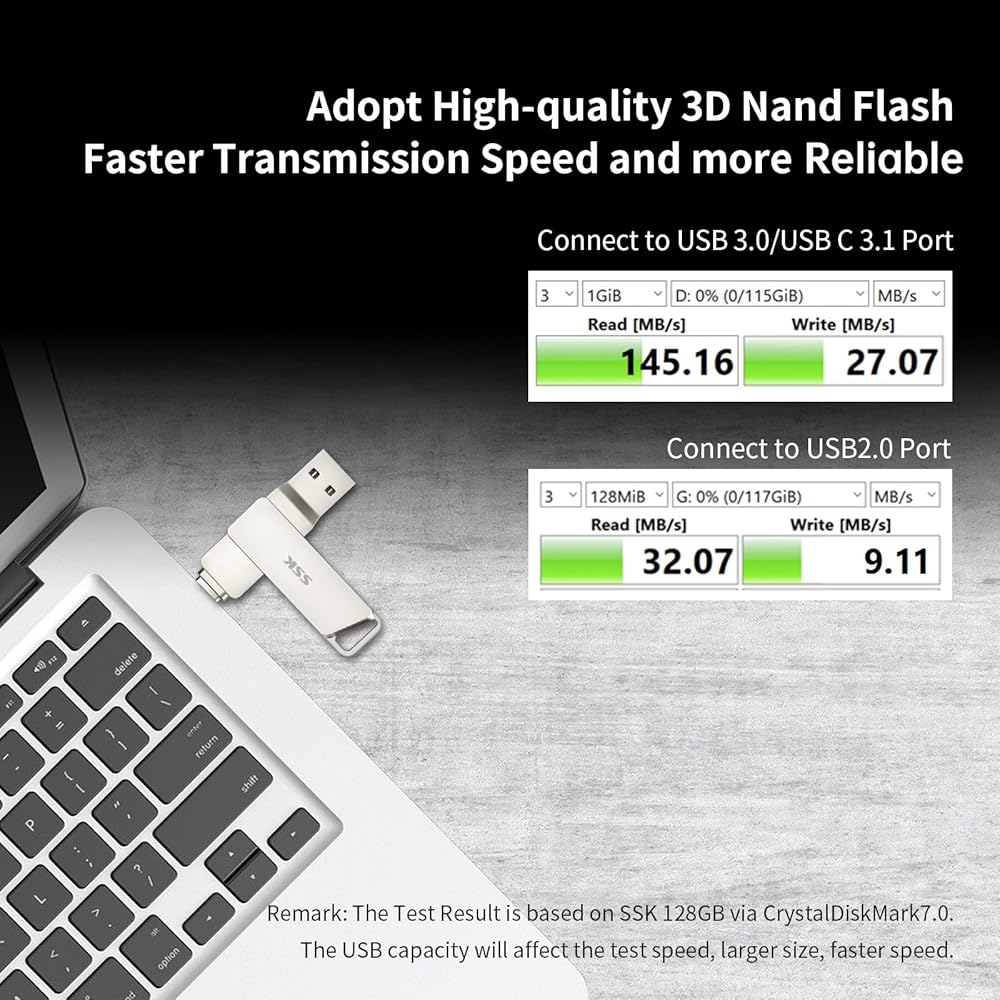 • 【سرعة نقل أسرع】: سرعة قراءة USB 3.1 تصل إلى 150 ميجابايت/ثانية (سرعة الكتابة أقل وتختلف حسب السعة). إنه أسرع بثلاث مرات من محركات أقراص فلاش USB 2.0. لا مزيد من الانتظار لفترة طويلة أثناء نقل الملفات والموسيقى والصور والأفلام. ليست هناك حاجة لتثبيت برنامج أو تطبيق لمحرك الأقراص المحمول المزدوج. التوصيل والتشغيل، سهل الاستخدام.