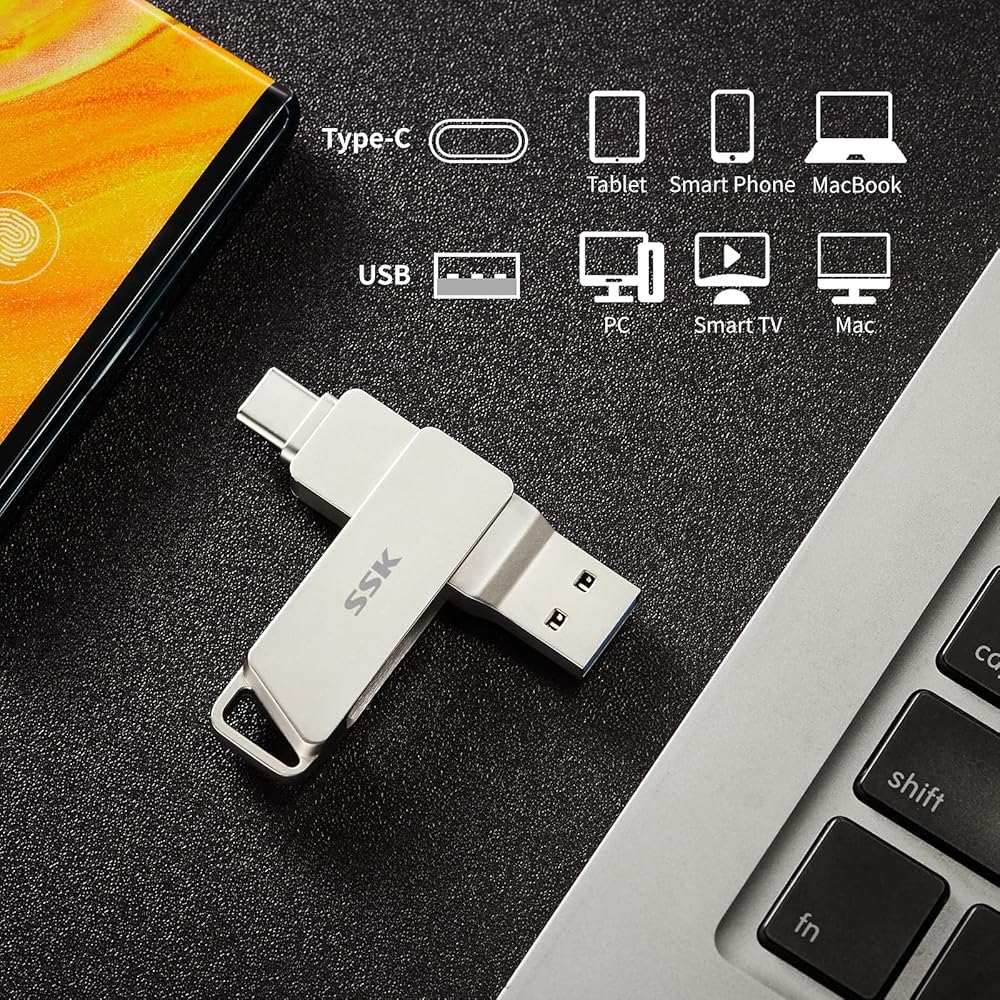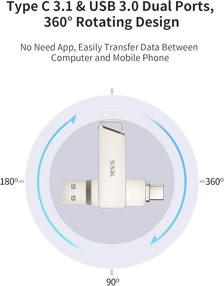 • 【تصميم دوار 360 درجة】: عصا ذاكرة USB 2 في 1 مع تصميم المشبك المبتكر المقاوم للفقد بدوران 360 درجة، وتصميم نقطة الالتصاق 90 درجة يمنع دوران المحرك بشكل عشوائي، يمكنك تعليق عصا ذاكرة USB C على سلسلة مفاتيح. مع حلقة معلقة أنسنة.