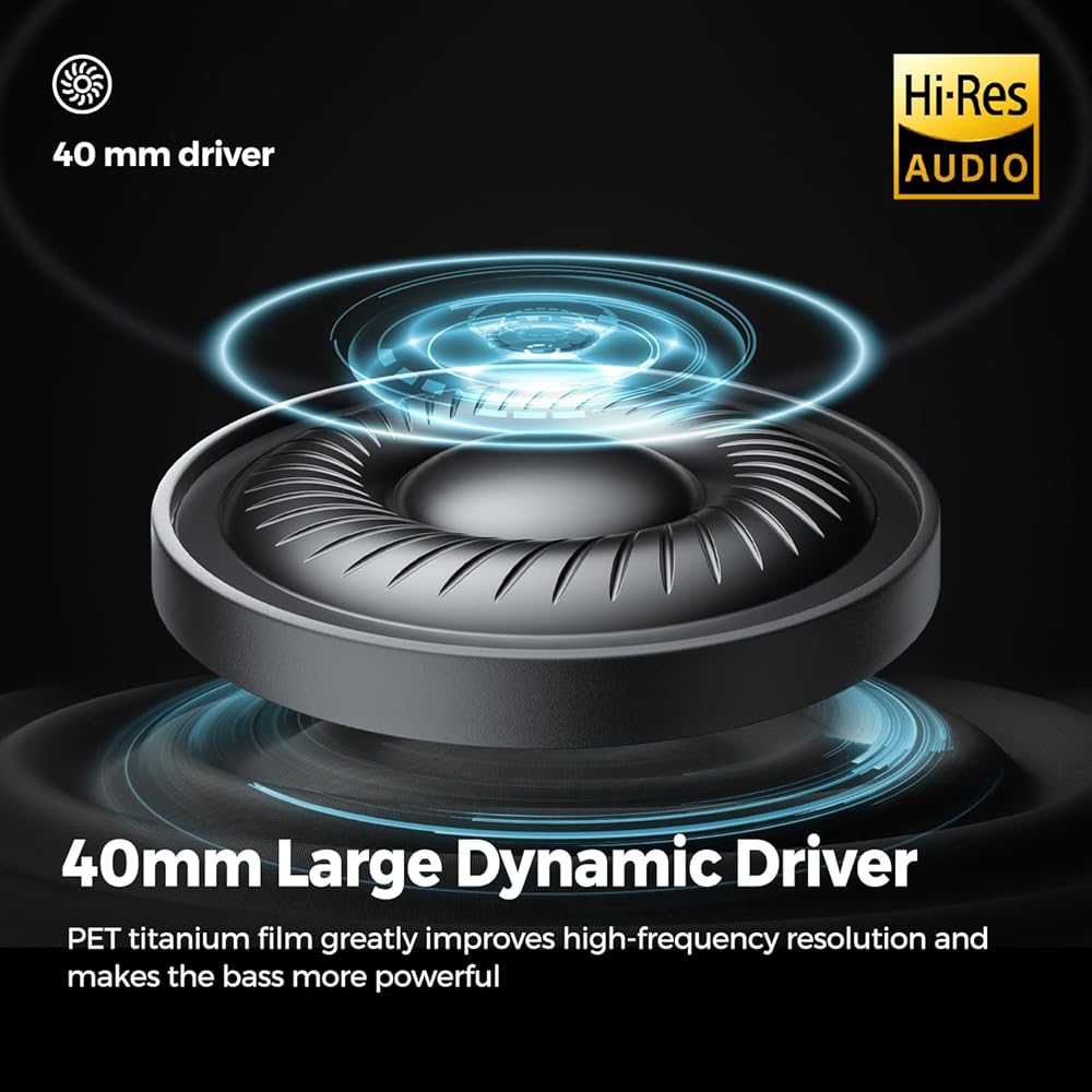 🎧Hi-Res Crystal-clear Sound & Powerful Bass. SoundPEATS Space Bluetooth headphones have built-in 40mm dynamic drivers, providing high-quality audio, clear stereo sound and powerful bass. The finely-tuned sound makes the highs clear and bright, and the mids and bass mellow and rich, allowing for a free performance of various musical styles.