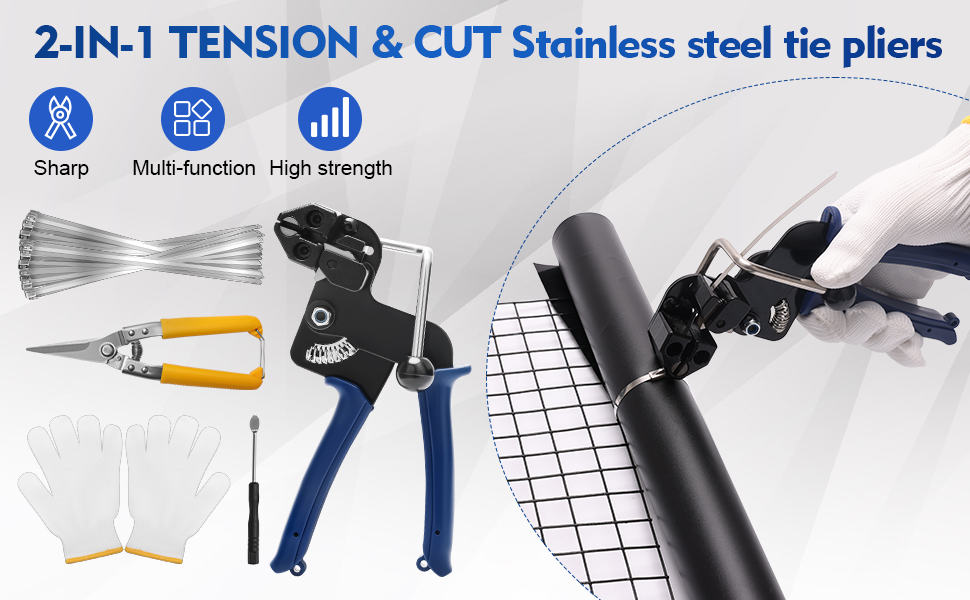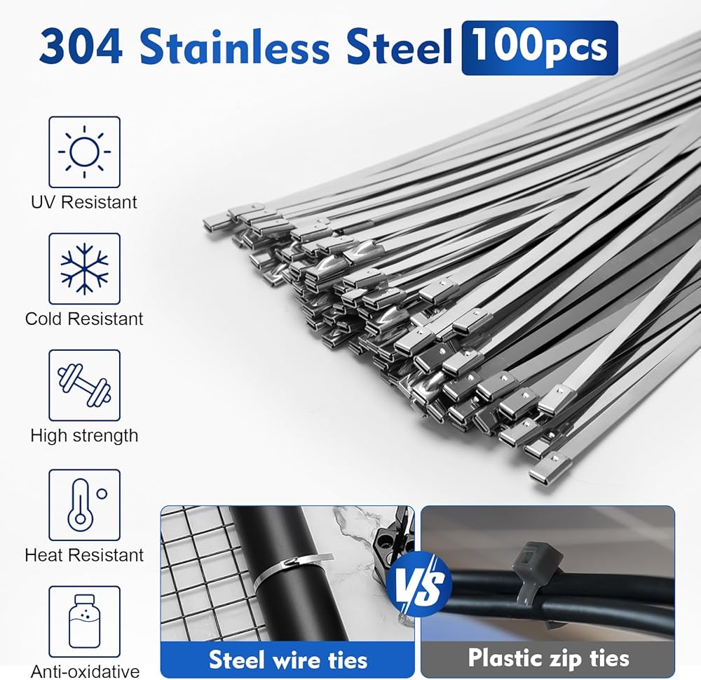 • 2. روابط كابلات من الفولاذ المقاوم للصدأ عالية الجودة: ربطات الأسلاك الفولاذية مصنوعة من الفولاذ المقاوم للصدأ 304 الفاخر، وتتميز بآلية قفل ذاتي شديدة التحمل. فهو مقاوم للصدأ، ومتين، وقادر على التعامل مع الضغط العالي والأحمال الثقيلة في كل من التطبيقات الداخلية والخارجية، مما يضمن أداء طويل الأمد في بيئات متنوعة. تُعد أداة ربط الرمز البريدي الخيار المثالي لأسوار ربط السلسلة، ولفائف الأسلاك، وما إلى ذلك. أداة مسدس ربط الرمز البريدي.