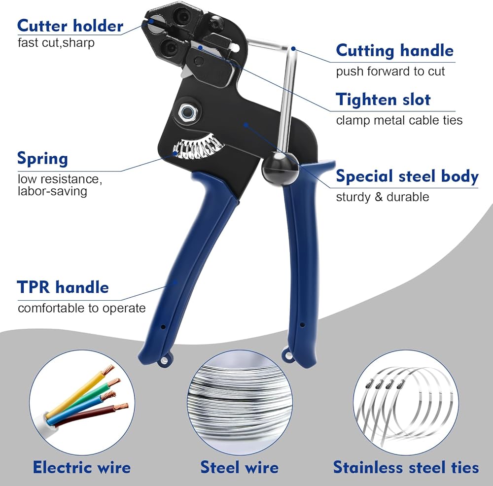 • 1. مسدس ربط الكابل من الفولاذ المقاوم للصدأ: كماشة أداة السحاب المعدني مصنوعة من شفرة فولاذية SKD11، ويتكون المقبض من مادة TPR. تتيح الصلابة الاستثنائية ومقاومة التآكل والقدرة على الإمساك قطع السحاب المعدني وتشديده دون عناء. مسدس ربط الكابل مريح وذو كفاءة عالية. يمكن استخدامه مع أي طول من غلاف ربط الكابل ويمكن أن يستوعب عرضًا يبلغ 0.47 بوصة (12 مم) وسمك 0.01 بوصة (0.3 مم).