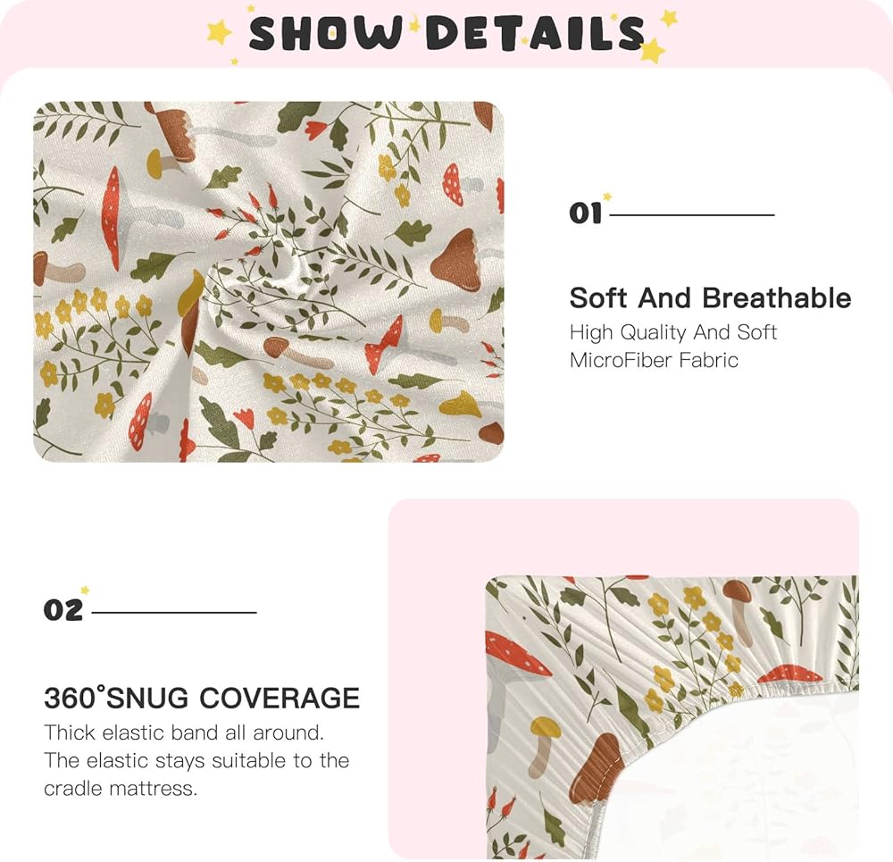 • 【MATERIAL】:Cotton like Modal 95% Polyester+5% Spandex.Product Size: S:99*68*12.7cm(39*27*5in)playard sheet. M:132*71*23cm(52*28*9in)crib sheet