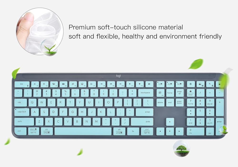 مادة سيليكون عالية الجودة: غلاف لوحة المفاتيح Logitech MK955 K950 مصنوع من مادة سيليكون ناعمة الملمس، ناعمة ومرنة، صحية وصديقة للبيئة.
