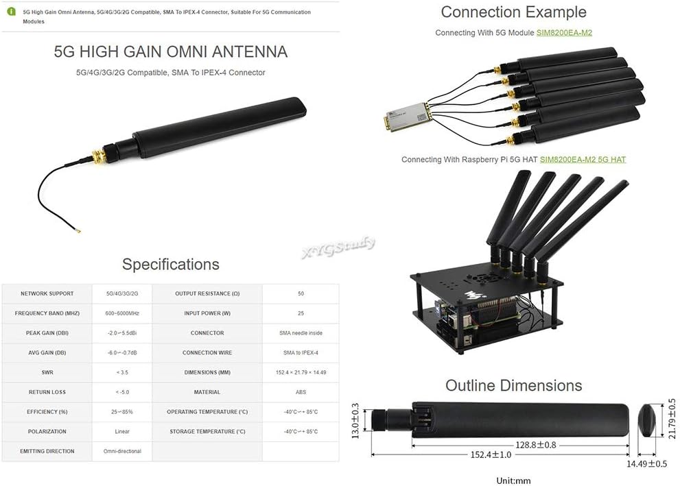 5G high gain omni antenna, 5G/4G/3G/2G compatible, SMA to IPEX-4 connector, suitable for 5G communication modules