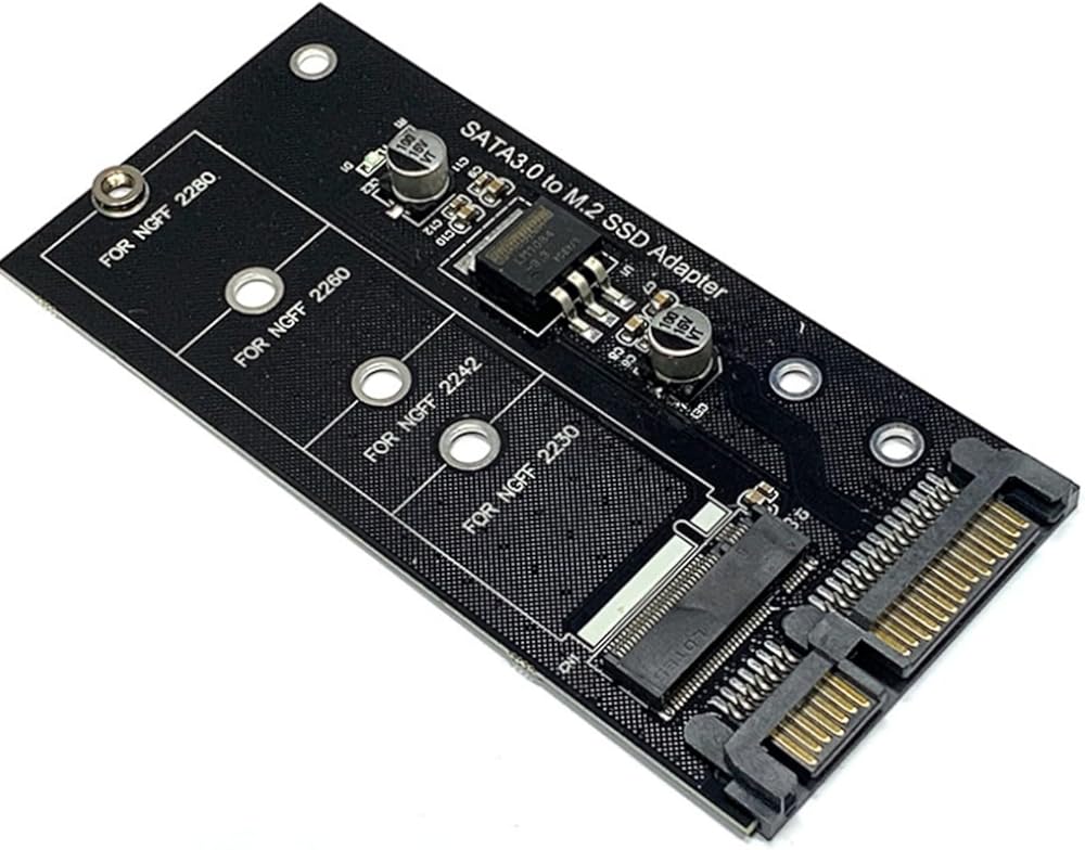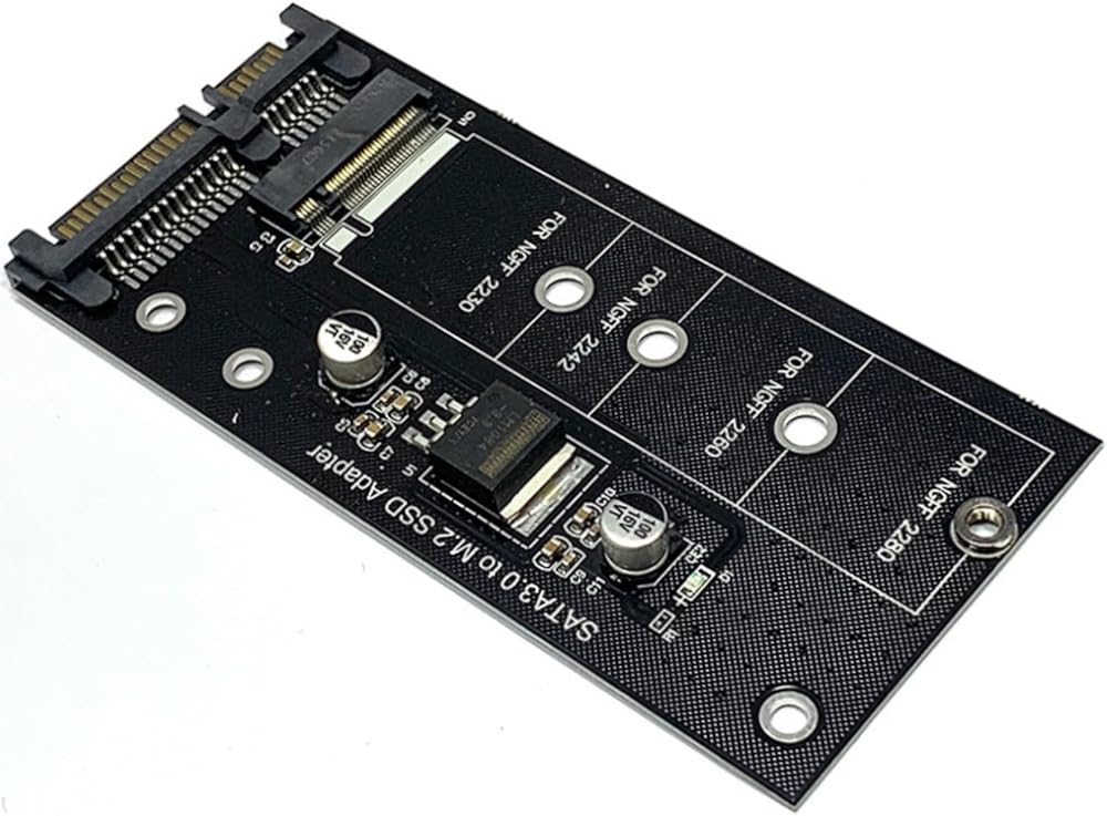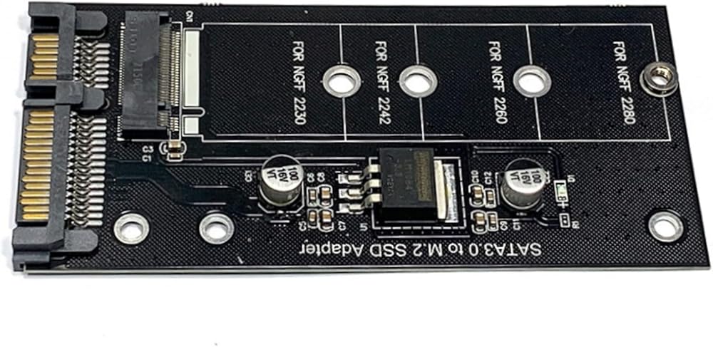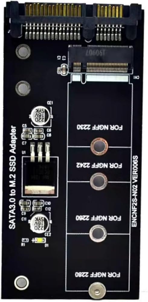 Brand Suckoo Serial 2.5 SATA3 22Pin to NGFF M.2 SATA SSD Adapter Laptop Host 2.5 SATA3 22Pin to NGFF M.2 B-key SATA SSD Expansion Card Converter Black. This is an adapter from a serial 2.5 SATA3 22Pin laptop hard disk port to an NGFF M.2 B-key SATA SSD. It connects the 2.5 SATA 22Pin to the NGFF M.2 B-key SATA hard drive bay. Converts the 2.5 SATA 22Pin interface to the NGFF M.2 SATA interface for easy connection to the computer host. With this converter, you can convert 2.5 SATA3 22Pin serial port to NGFF M.2 B-key SATA protocol hard disk (NVME M.2 PCIE protocol hard disk is not supported) for data storage and transfer. It helps you to use NGFF M.2 SATA solid state drives in your notebook desktop computer, thus providing more storage space and data transfer. The adapter is made of high quality manufacturing process and materials for stable and reliable performance and excellent user experience. Support NGFF M.2 B-key SATA protocol 2230 2242 2260 2280 SSD hard disk for various operating systems. Color: Black, Product Size: 10x4.4x0.5 cm: This product 1 piece + 1 set of screws. The adapter is plug and play and does not require any software or driver CD.