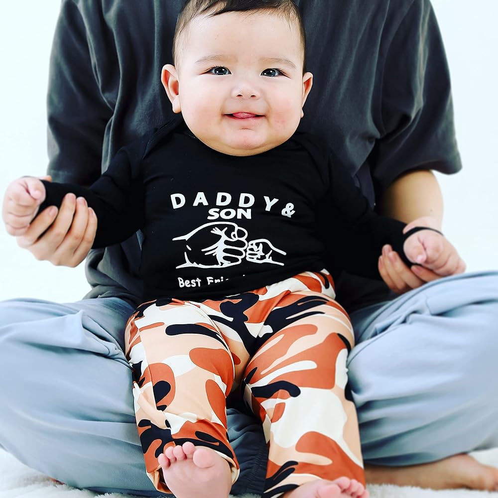• 1 × قميص رومبر عصري بأكمام طويلة + 1 × سروال طويل. سوف يحصل رجلك الصغير على الكثير من الثناء.