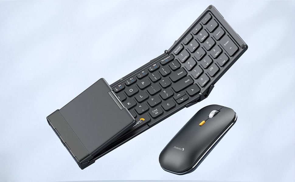 لوحة مفاتيح وماوس مضغوطة قابلة للطي من ProtoArc، مجموعة ماوس لوحة مفاتيح بلوتوث صغيرة محمولة XKM01، لوحة مفاتيح قابلة للطي للسفر لأجهزة iPad iPhone Mac Android Windows - مفتاح Esc باللون الأسود والأرجواني