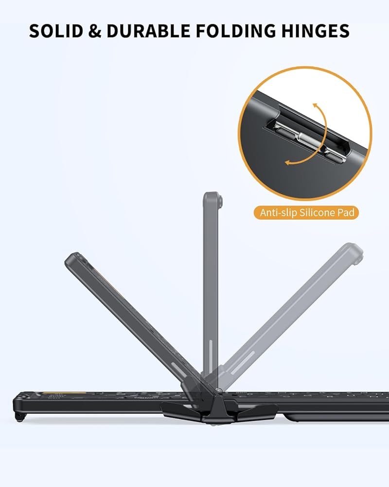 【لوحة مفاتيح ثلاثية الطي مع ماوس】 تم تصميم لوحة المفاتيح الصغيرة القابلة للطي XKM01 بثلاثة طيات وصغيرة الحجم بما يكفي لسهولة الاستخدام. يأتي مع ماوس نحيف 3 DPI وحامل هاتف وحقيبة حمل، وهو الرفيق المثالي للمسافرين الدائمين. أقصى قدر من الراحة بالنسبة لك مع الحد الأدنى من الوزن والحجم!
