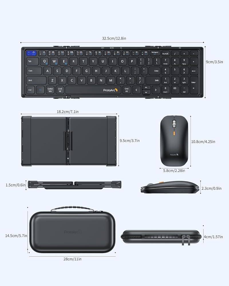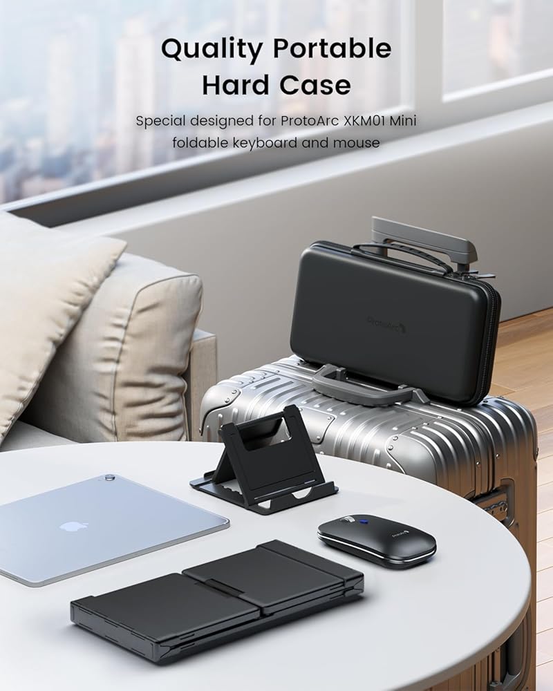 【كيف تصنع الأشياء الصغيرة فرقًا】مجموعة ماوس لوحة المفاتيح بحجم الجيب من ProtoArc، تتضمن حقيبة سفر صلبة وحامل هاتف، فقط قم بتعبئتها ووضعها في حقيبتك أو حقيبتك دون شغل مساحة كبيرة. ملحق يجب اقتناؤه لأي شخص يبحث عن إنتاجية محمولة دون أي تنازلات.