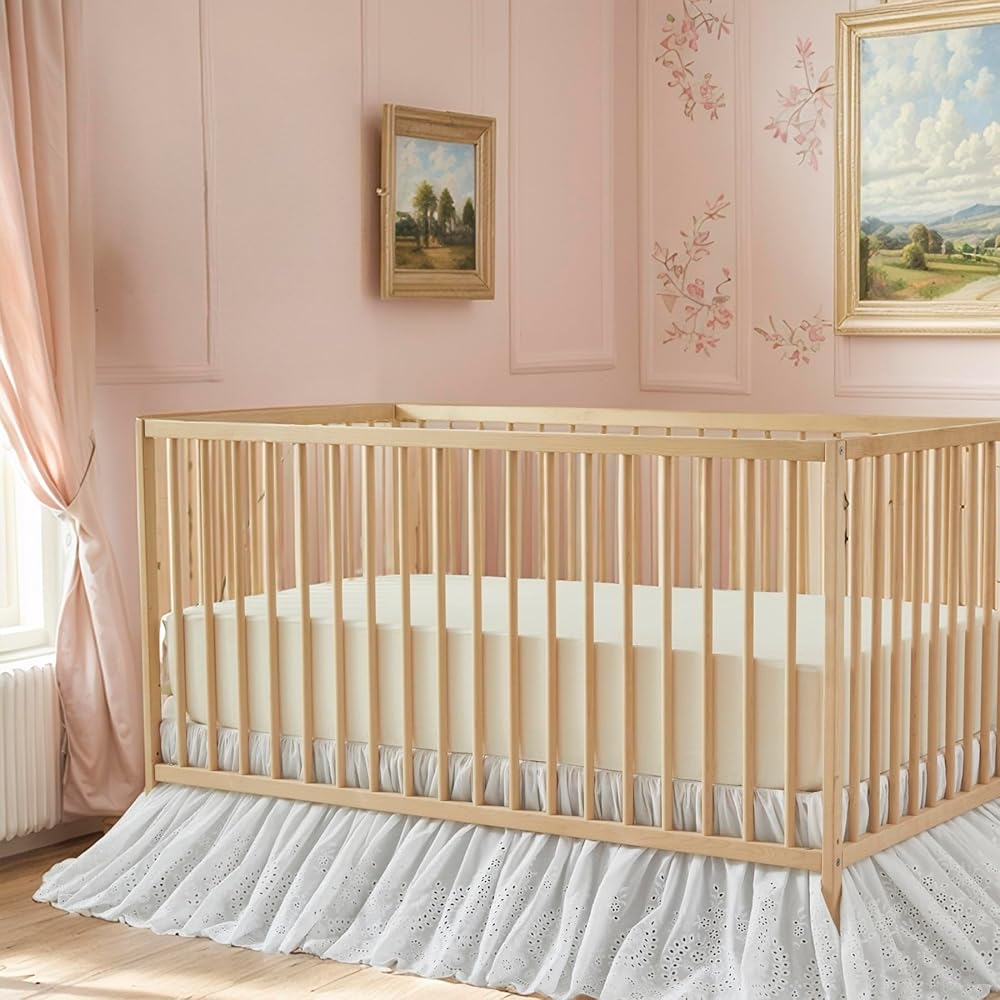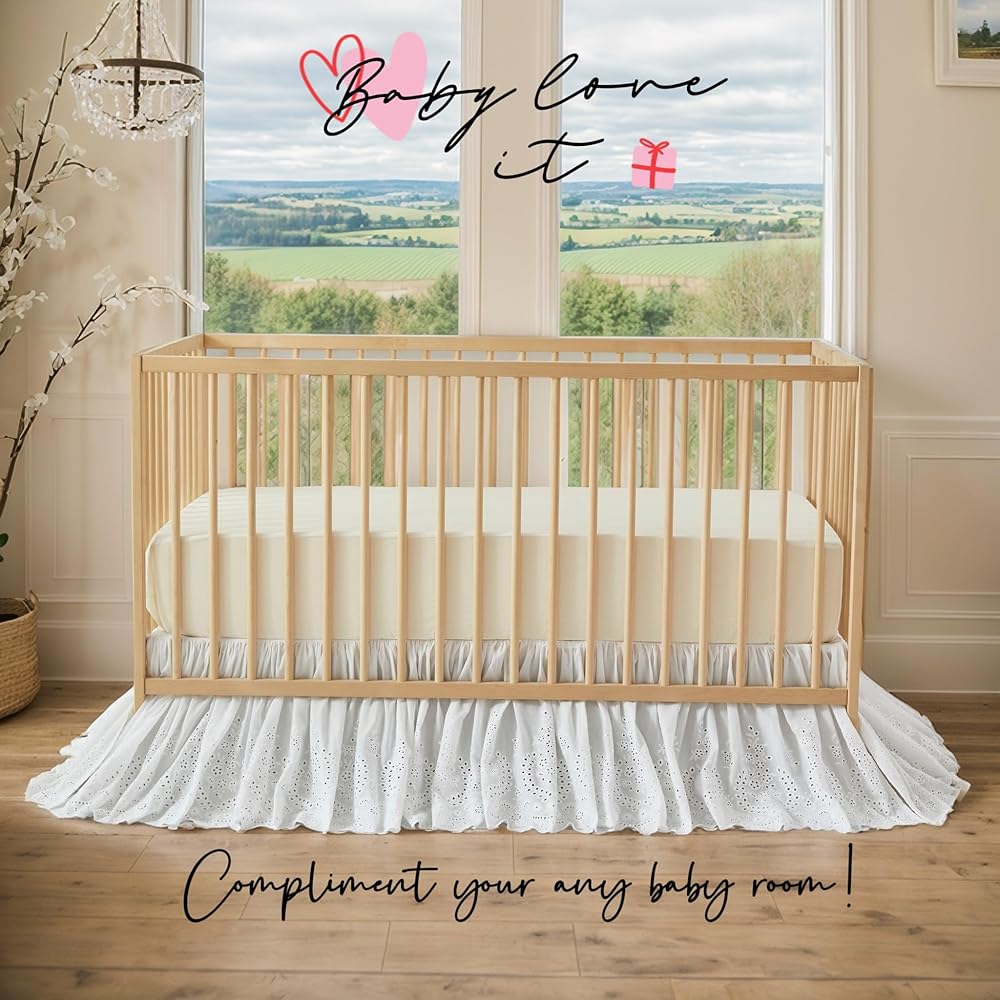 Crib Skirt Dust Ruffle is adorned with delicate lace detailing that dances along the edges, adding a whisper of vintage charm to the nursery. Its beige and cream color palette is versatile yet distinctive, offering a neutral backdrop that complements a variety of decor styles while ensuring your baby girl's space feels warm and inviting.