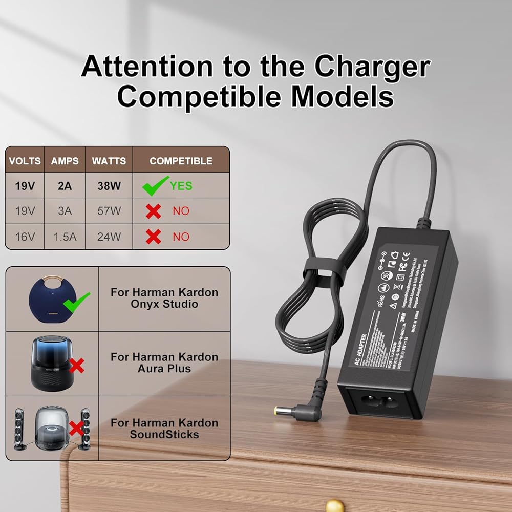 【توافق واسع 】 شاحن لـ Harman KardonOnyx Studio 7 6 5 4 3 2 1 8 مكبر صوت لاسلكي محمول P/N APIONYXST3NSA40 ESX2567Q 6132A-ONYXST FC0031 FC0027 AU38AA-00 AU38AA-OO FC0005-0767095 TR00236_B تشو APIONYXST2 APIONYXST3 شاحن لهارمان شاحن بطارية سلك إمداد الطاقة البديل من كاردون.