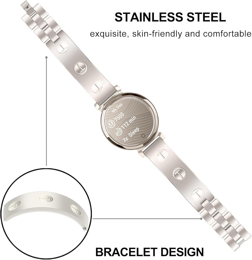 TRUMiRR Women Band for Garmin Lily 2 Smart Watch, Cream Gold Stainless Steel Strap Jewelry Buckle Bracelet for Garmin Lily 2 Only