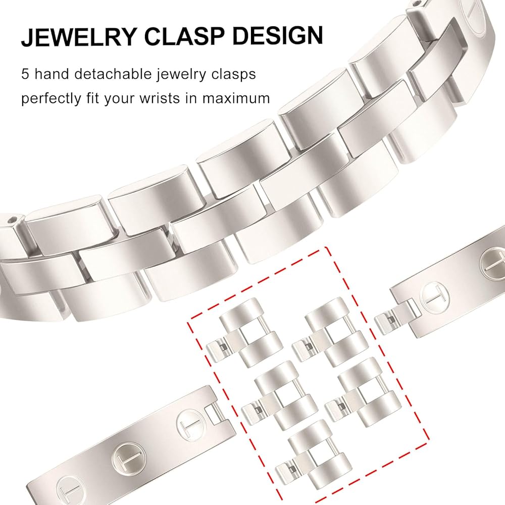 EASY RESIZING: Fit wrists 5.3'' to 7.7''(135mm to 195mm), covering the majority of women wrists. 5 hand detachable jewelry clasps, remove easily to adjust band length, perfectly fit your wrist in maximum.