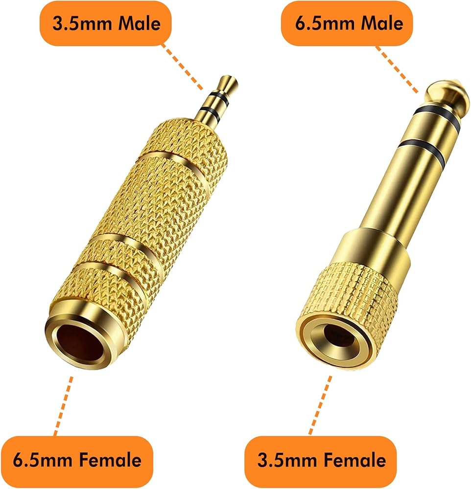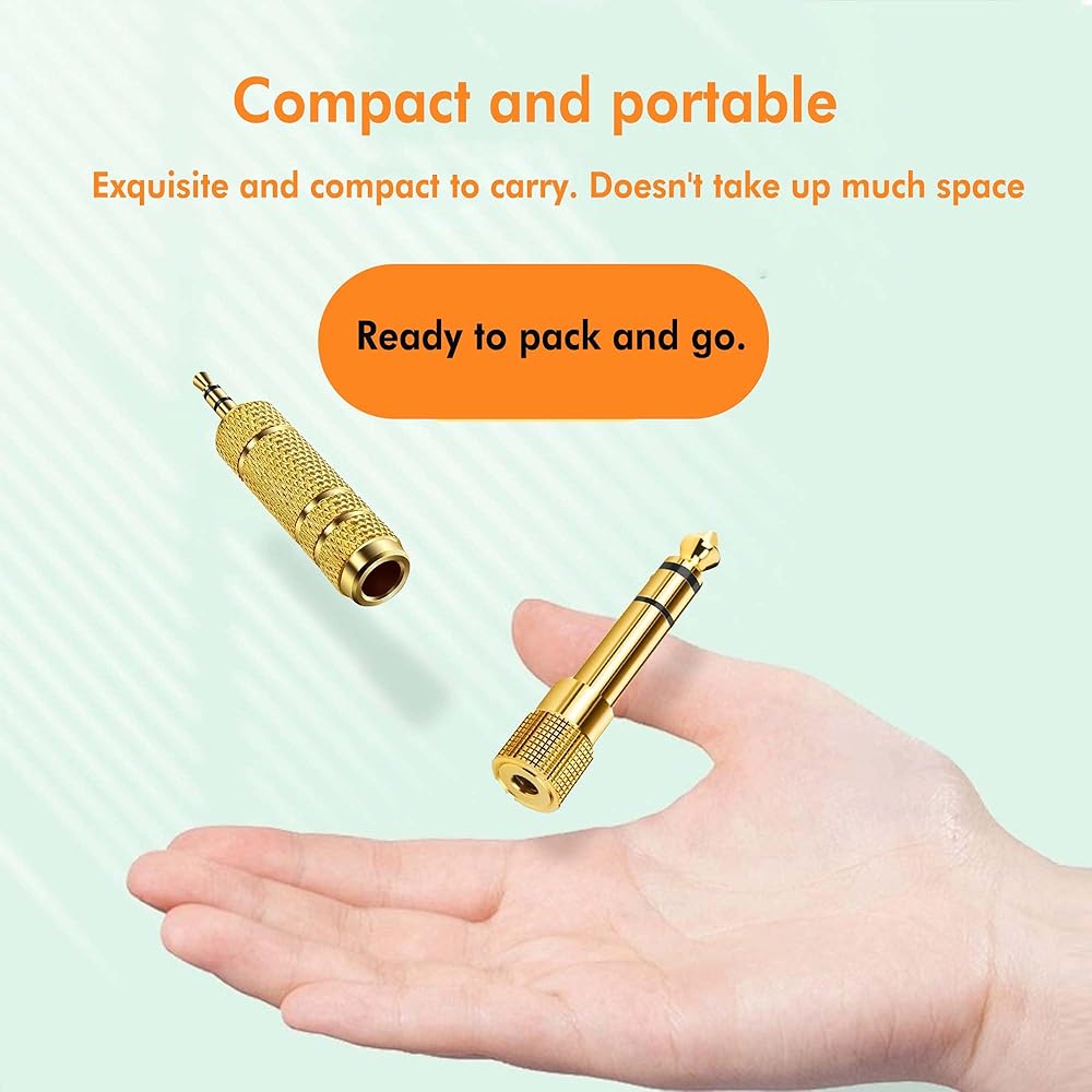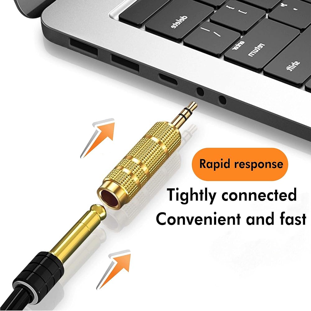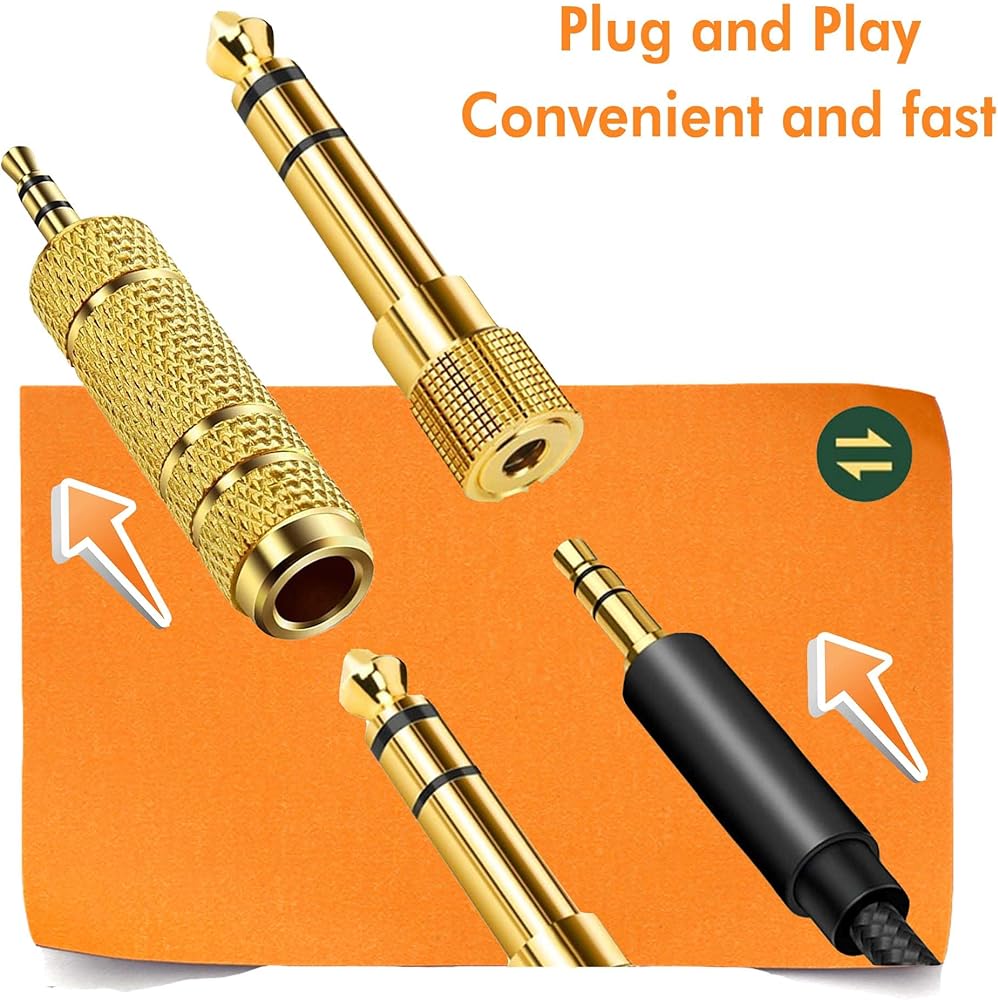 محول سماعة الرأس 3.5 مم إلى 6.35 مم: (6.35 مم أنثى إلى 3.5 مم ذكر) ينقل الصوت بين أجهزة 3.5 مم (الهواتف الذكية أو أجهزة الكمبيوتر المحمولة أو سماعات الرأس) وأجهزة 6.35 مم (مكبرات الصوت، الجيتارات، البيانو، الخلاطات، أنظمة الاستريو المنزلية) نقل الصوت بينهما. ملحوظة: يرجى تدوير القابس بلطف للتأكد من إدخاله بالكامل في المقبس!