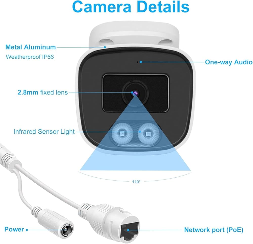 • 【IP66 Waterproof Rated Enclosure and 2.8MM Wide Angle Lens】Full metal case ideal for outdoor applications. With a wide range in operating temperatures, it is designed to withstand extreme temperatures and protected from dust and rain. The 2.8 mm fixed lens on this camera offers an impressive 108° field of view to cover and protect a wider area, using fewer devices for a large area.