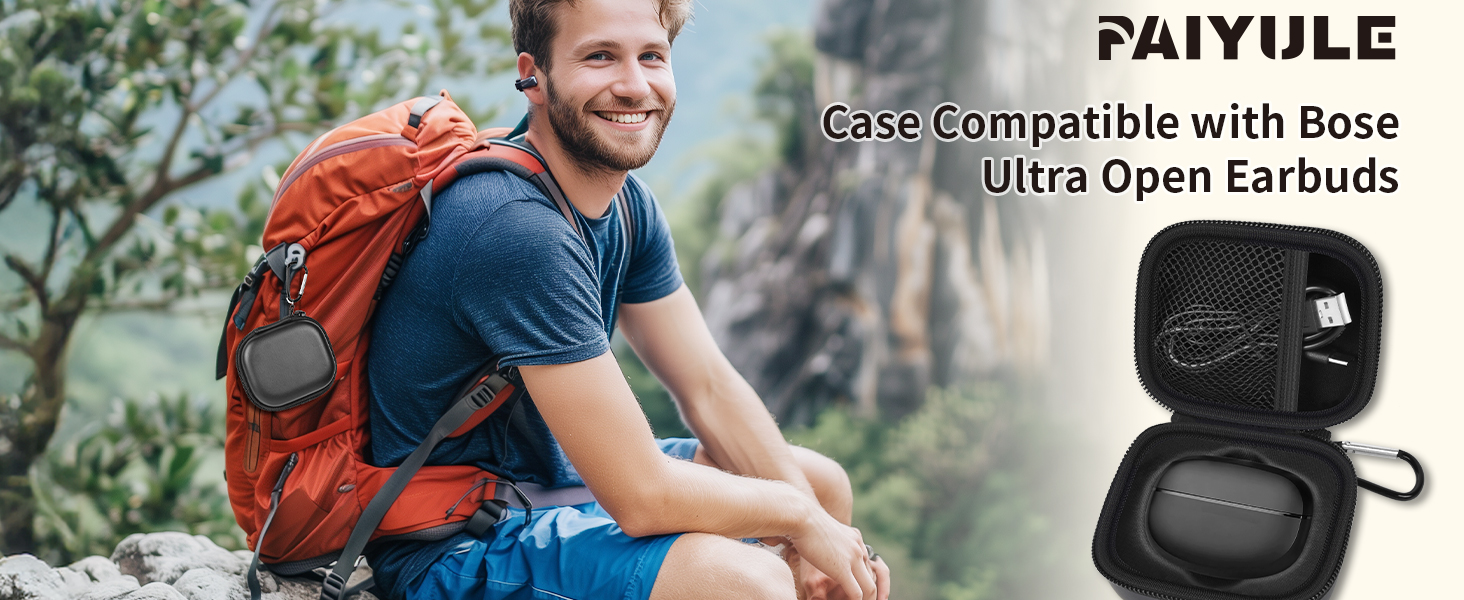 حافظة PAIYULE متوافقة مع سماعات الأذن Bose Ultra Open، حامل تخزين سماعات الأذن بمشبك لاسلكي مفتوح للأذن لصندوق الشحن، جيب شبكي منظم لسماعات الرأس OpenAudio لـ USB-C (حقيبة فقط) أسود