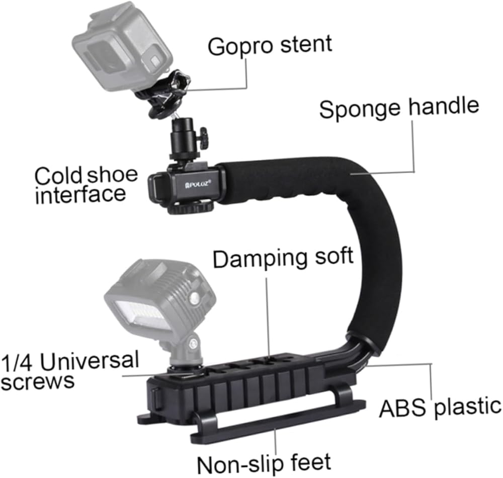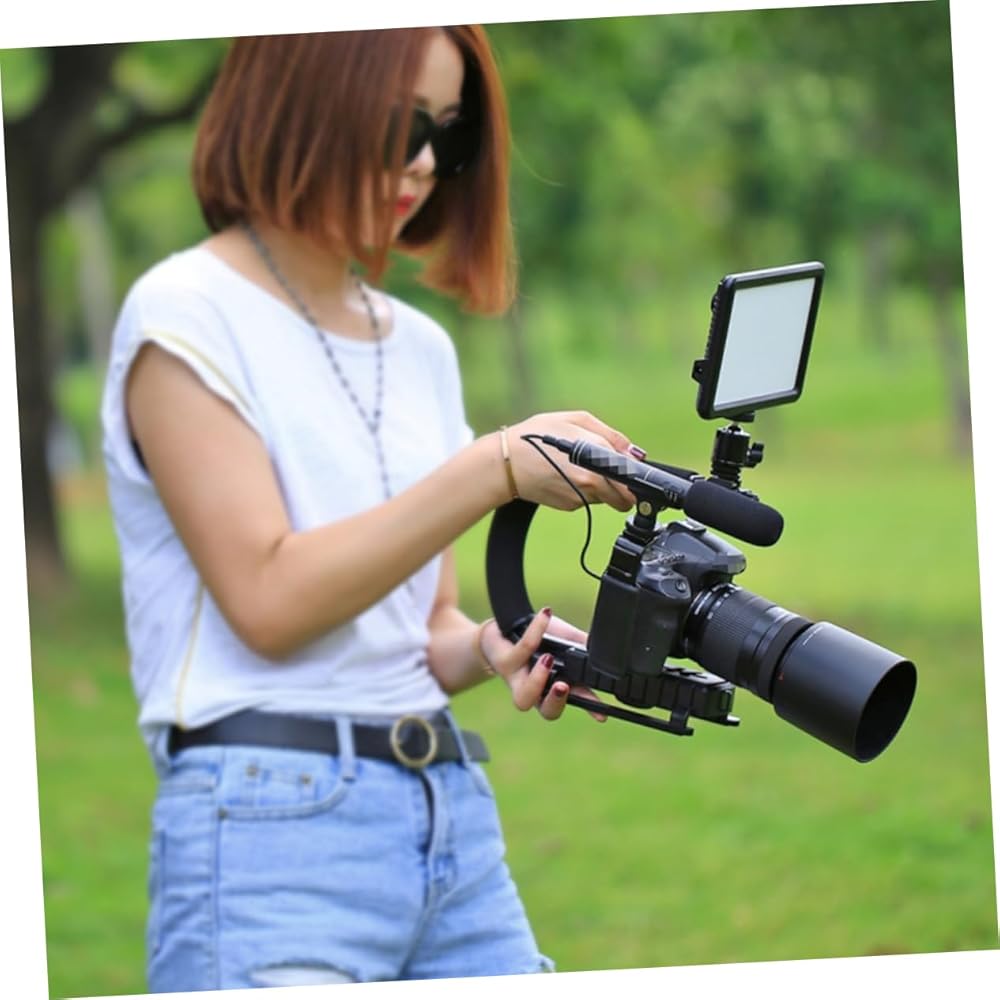 - C-shaped design that alleviates stress by offering a comfortable, secure grip for long time use camera video.